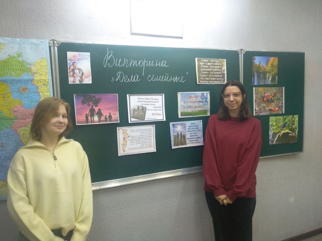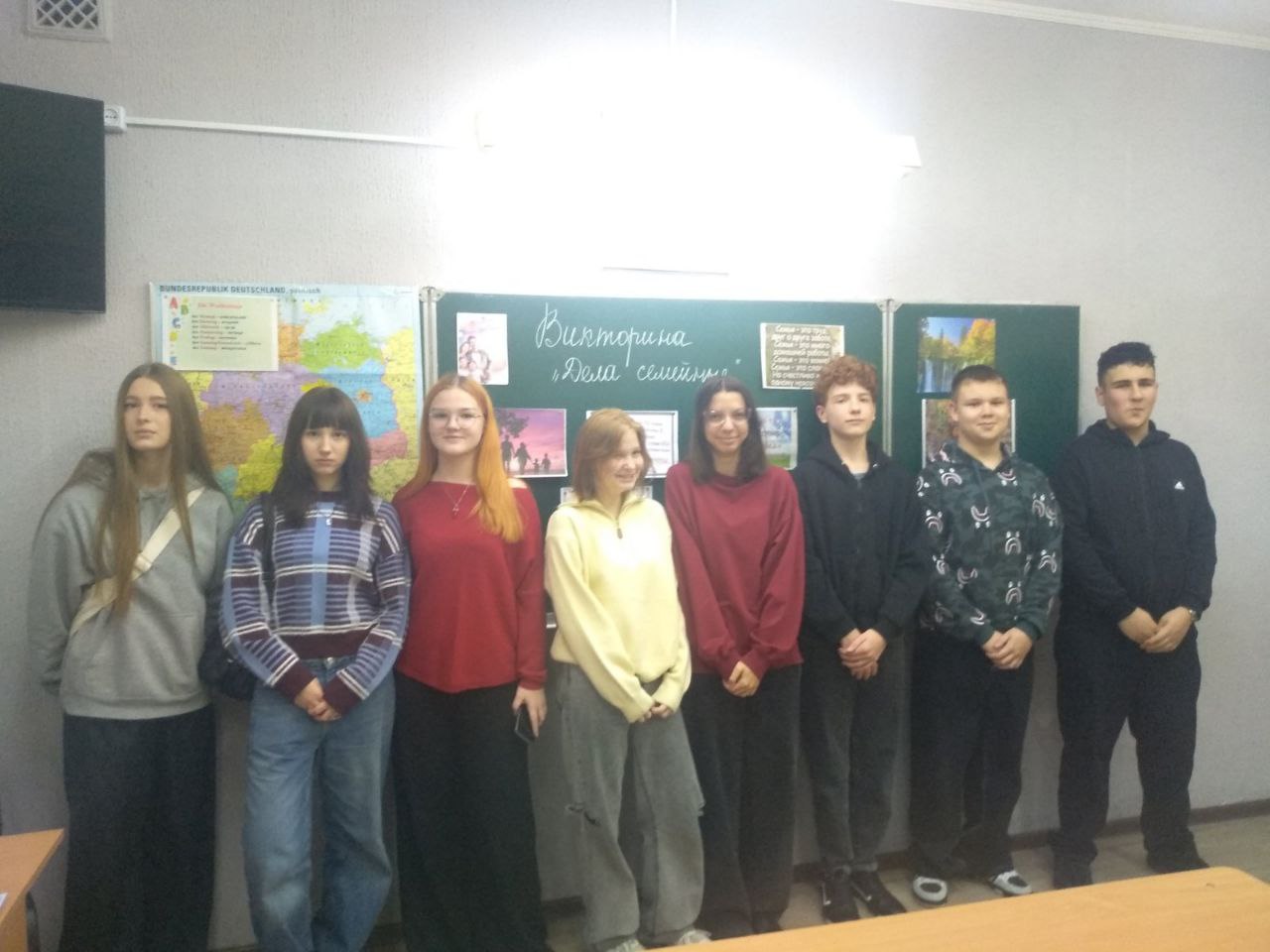 Для учащихся 9-11 классов прошла викторина «Дела семейные». Весело, в игровой форме ребята отвечали на вопросы, отгадывали загадки, дополняли пословицы и поговорки о семье, что способствовало формированию представлений о жизненном идеале семьи, ребята смогли поразмышлять над главными составляющими понятия «Семья» . Ребята обсудили значение семьи в жизни каждого человека, составили облако слов на тему «семья», каждый с удовольствием согласился назвать с какими словами у них ассоциируется понятие «Семья». Все учащиеся согласились, что память о предыдущих поколениях каждой семьи помогает лучше узнать и самого себя, ценить связь между родными и близкими людьми и стараться ещё больше узнать про свой род.