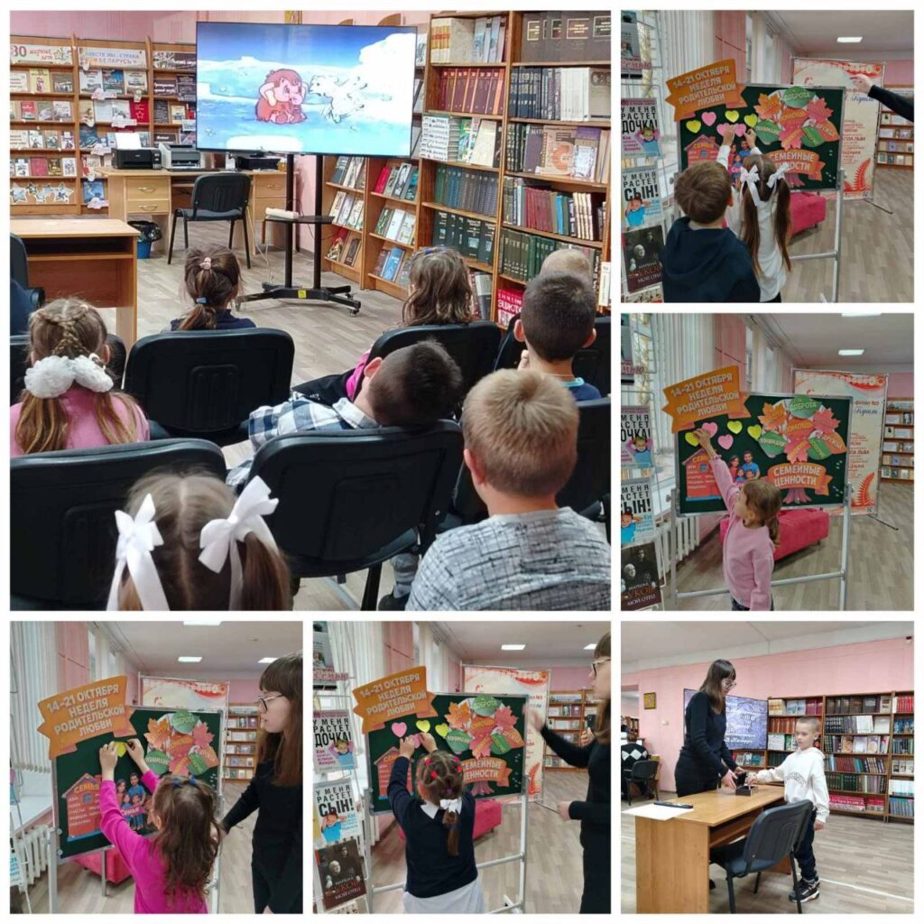 15 октября 2025 года в рамках родительской недели для учащихся 1-х классов в библиотеке №9 имени Я. Купалы прошло мероприятие «Всё начинается с семьи». Ребята послушали стихи о мамах, ответили на вопросы из сундучка, устно описали своих родителей, назвали их любимые блюда. Познакомились с традициями в семье, а в конце посмотрели мультфильм «Мама для мамонтенка».
