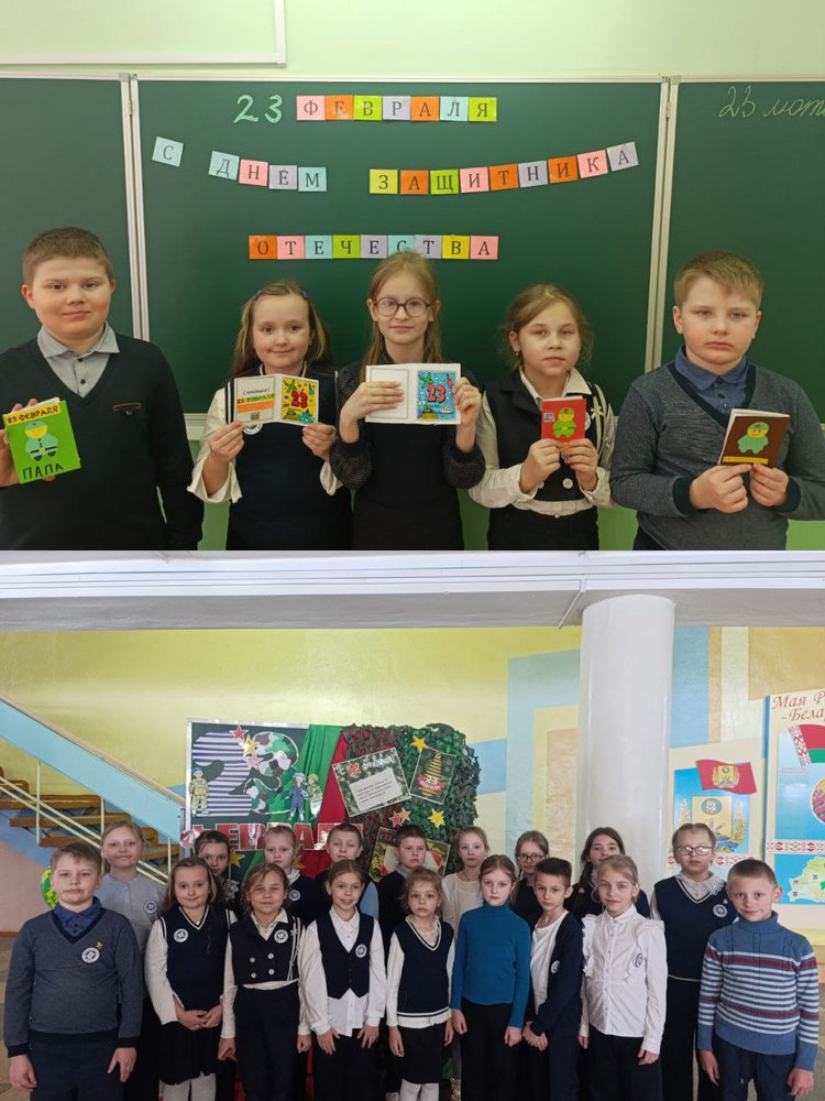 23 февраля 2026 года в группе продлённого дня 2-х,4-х классов (воспитатель Алесенко М.В.) прошло занятие «День защитника Отечества», посвященное Дню защитников Отечества и Вооруженных Сил Республики Беларусь. Ребята познакомились с историей возникновения праздника,так же отвечали на вопросы,отгадывали загадки. Завершилось занятие изготовлением поздравительных открыток.