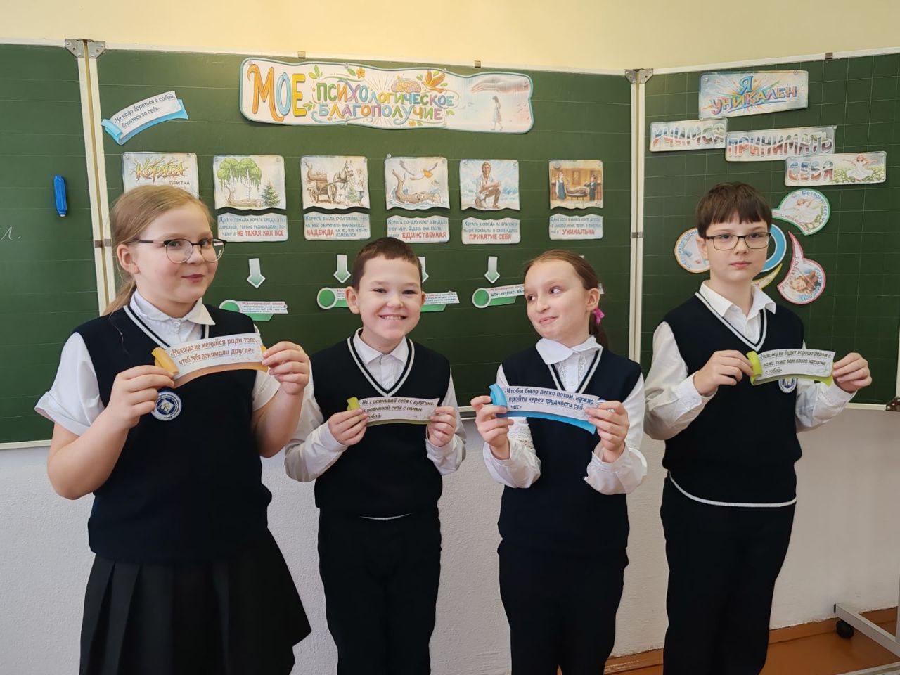 14 ноября в 4 «Б» классе прошёл классный час на тему «Я уникален:учимся принимать себя». Учащиеся познакомились с понятиями «уникальность», «самопринятие», «самооценка». Мы активно обсуждали, играли и даже рисовали, чтобы лучше понять самих себя и друг друга. Ребята сделали очень важный шаг-шаг к пониманию себя. Учащиеся пришли к выводу, что каждый из них уникален и ценен.