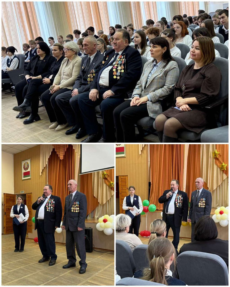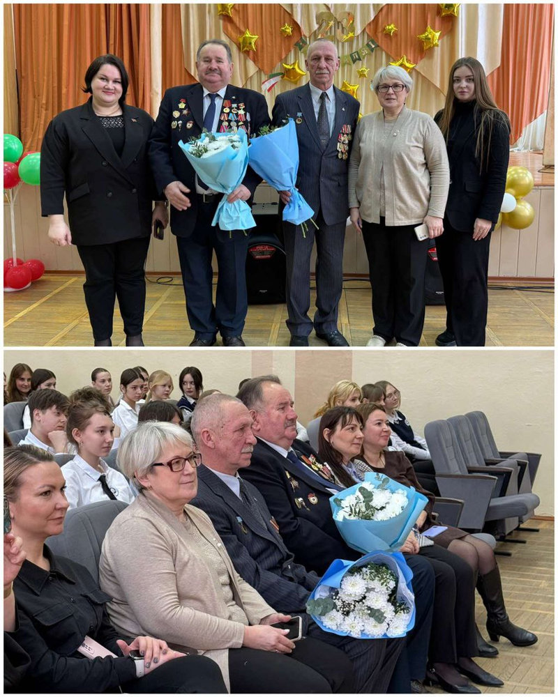 ✅В мероприятии приняли участие: председатель городского общественного объединения «Белорусский союз ветеранов в Афганистане» — Апенко Михаил Викторович, член совета городского общественного объединения «Белорусский союз ветеранов в Афганистане» — Лузанов Александр Михайлович, администрация и учащиеся школы.