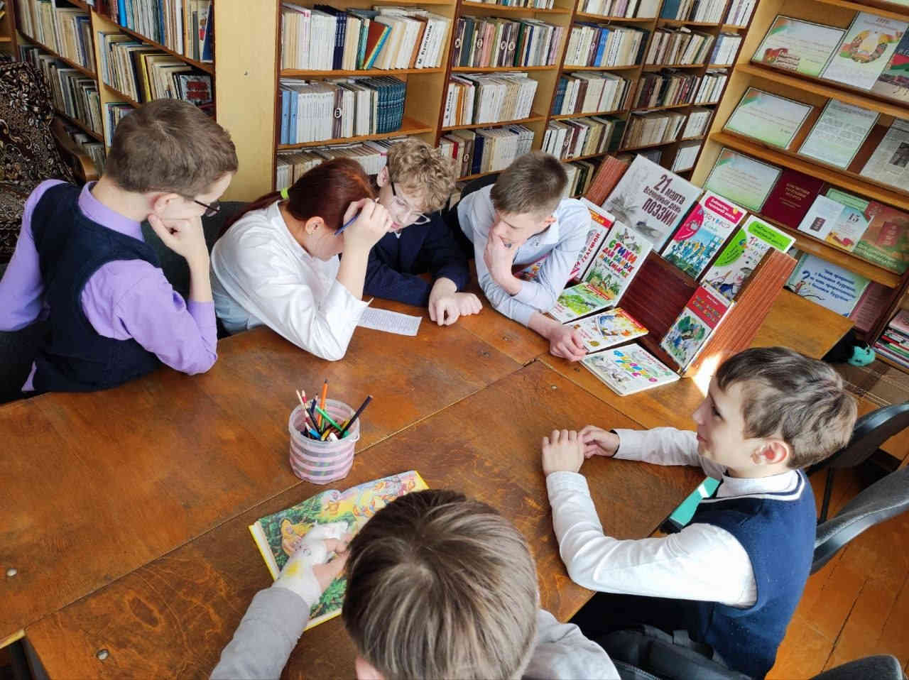 20 марта в школьной библиотеке для учащихся школы прошло литературно-игровое путешествие «Строки, знакомые с детства», приуроченное ко Всемирному Дню поэзии. Ребята составляли рассыпавшиеся стихотворения, вставляли пропущенные слова и отгадывали любимых поэтов.