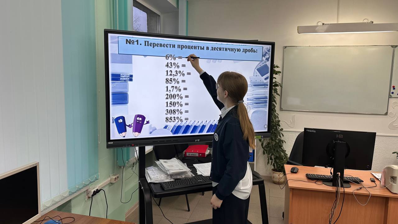 28 октября 2025 года в 6 «А» классе прошел открытый урок по математике. Тема «Проценты». С понятием «Проценты» ученики будут встречаться на протяжении изучения не только математики, но и географии, физики, химии и многих других учебных предметов. И уже во взрослой жизни, в различных сферах деятельности, мы сталкиваемся с этим понятием. Поэтому так важно, чтобы уже в шестом классе ученик основательно понял, что такое процент и научился оперировать им.