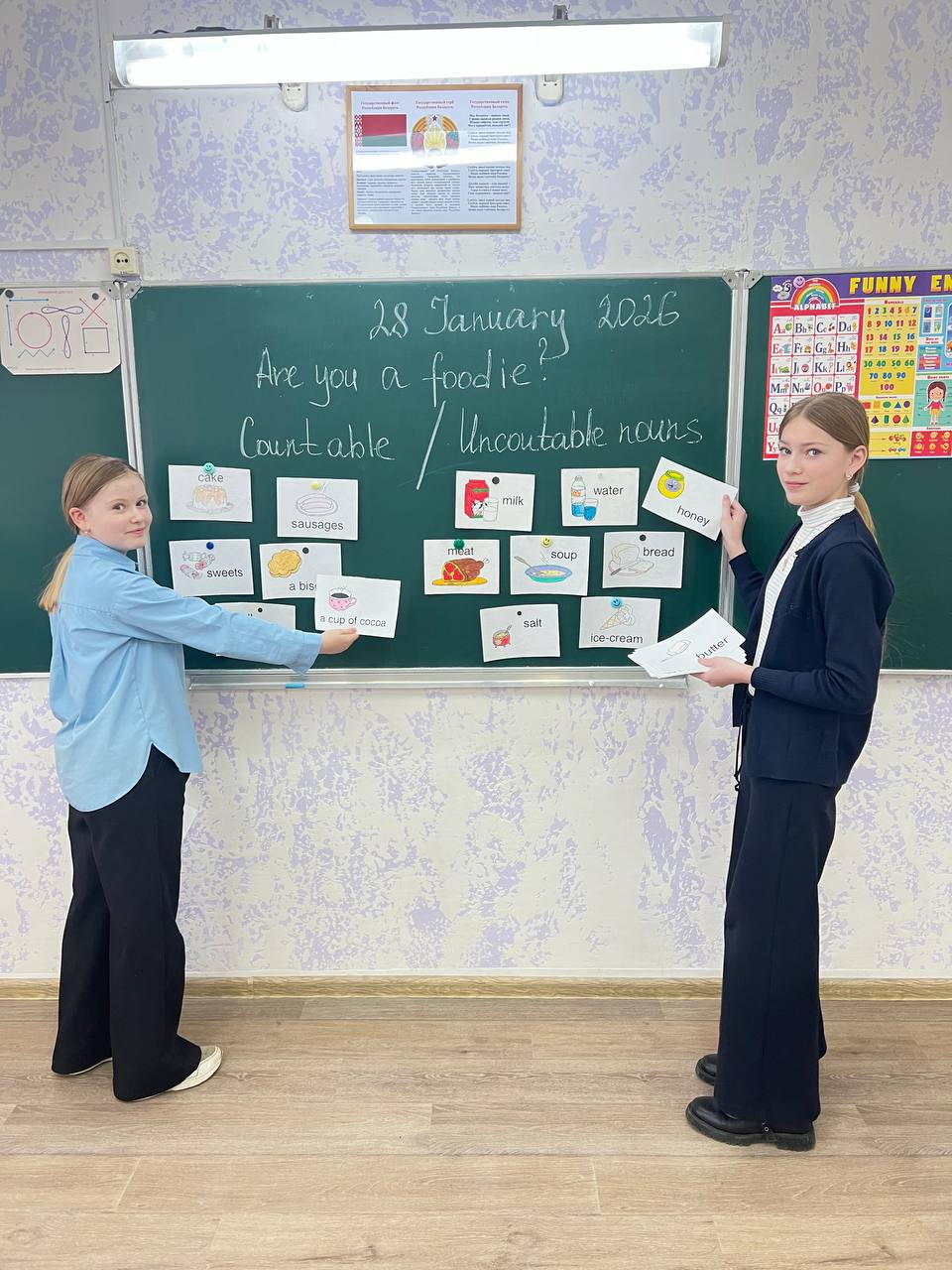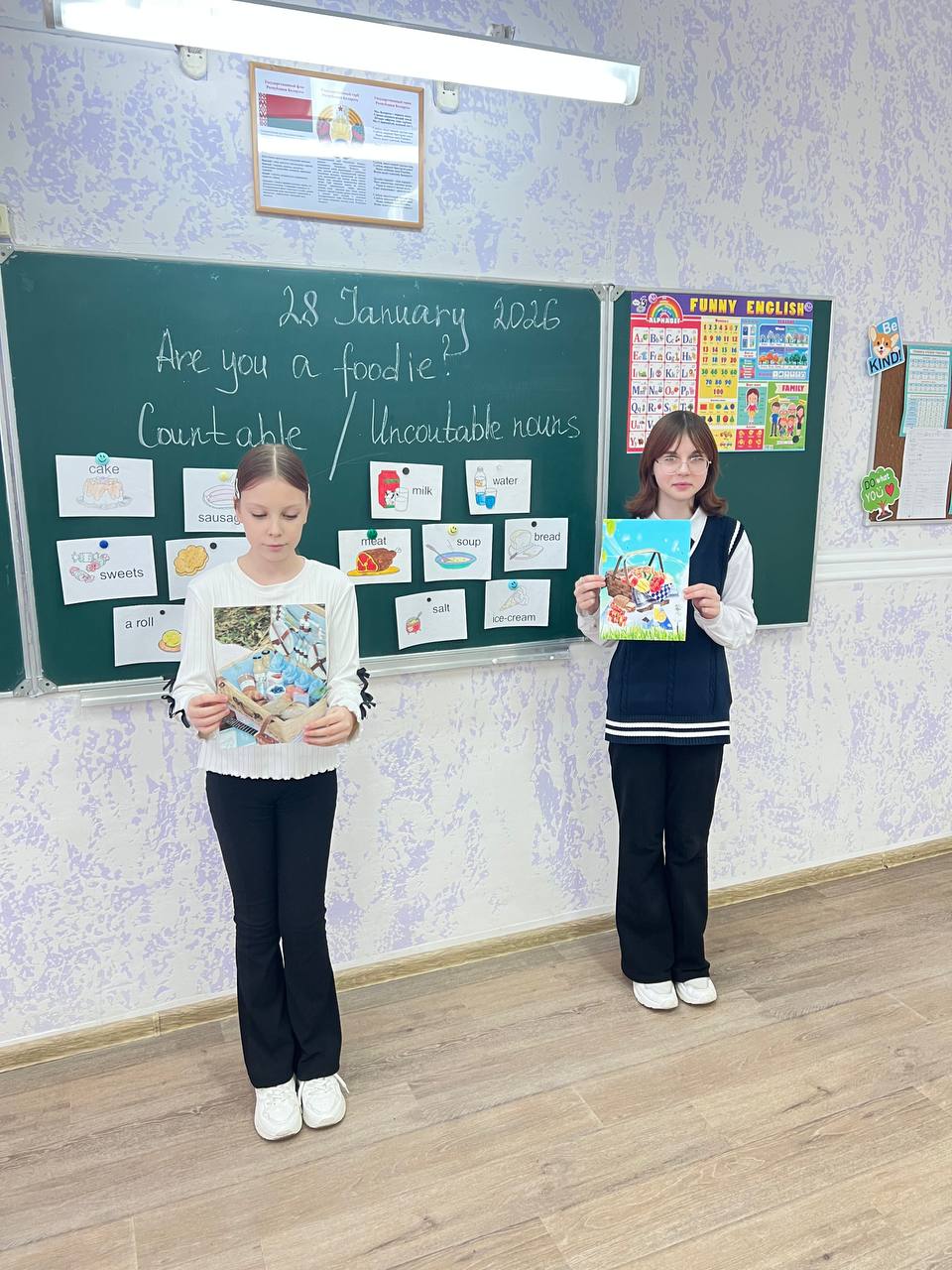 28 января 2026 проведён открытый урок в 6 «Б» классе по теме «Еда». С целью развития коммуникативной компетенции на уроке применялись все виды речевой деятельности. Учащиеся активно работали на уроке, проявляли заинтересованность. На уроке использовались современные технологии. Ребята получили положительные эмоции и достигли поставленной цели.