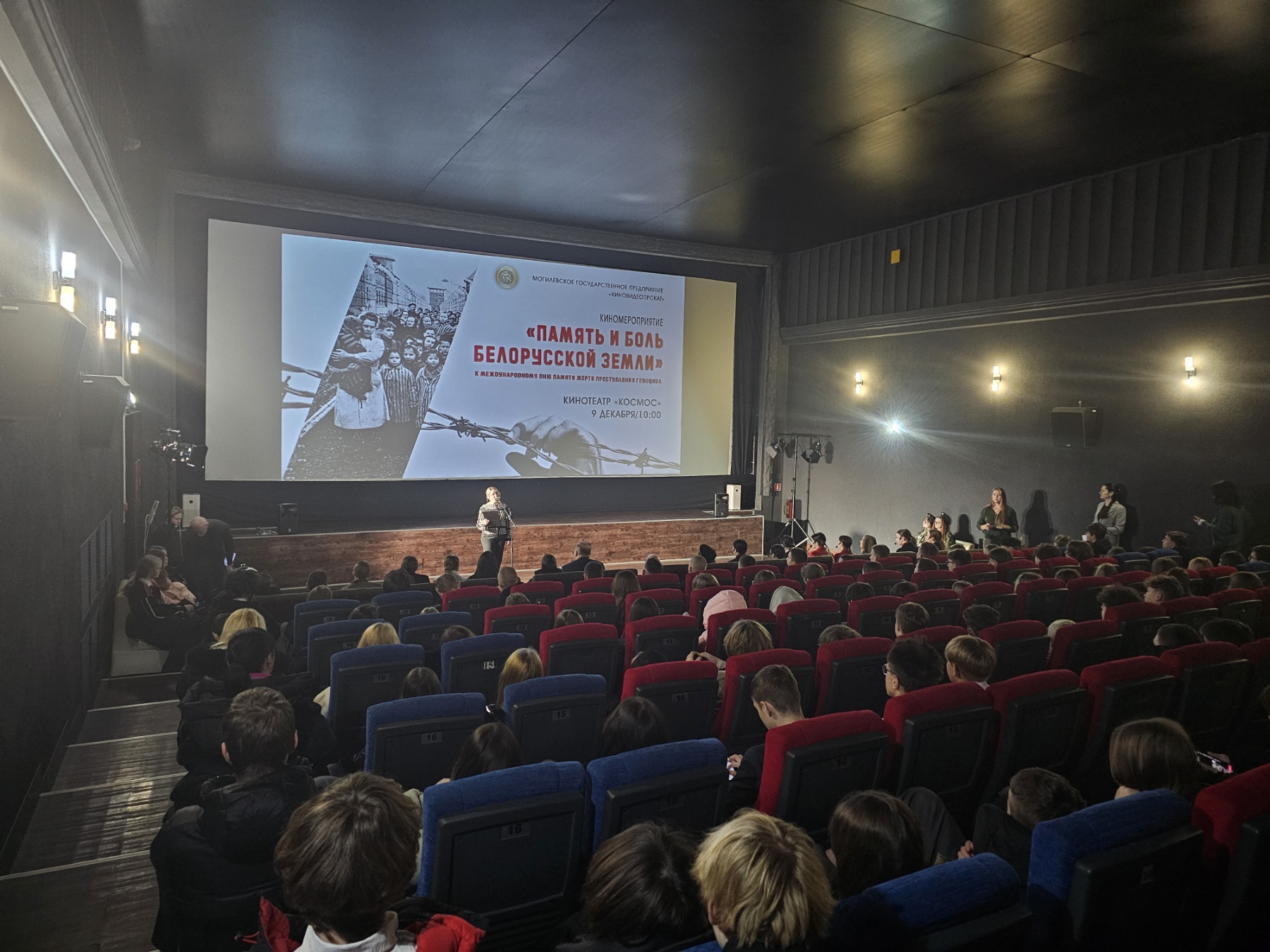09.12.2025 учащиеся нашей школы были приглашены в кинотеатр «Космос» на киномероприятие «Память и боль белорусской земли». На данном мероприятии выступали представители администрации города Могилева, а также сотрудники прокуратуры. Они огласили подробную статистику о жертвах геноцида на нашей белорусской земле. После этого были продемонстрированы тематические вокально-танцевальные номера, и, документальный фильм о ВОВ, разделенный на несколько эпизодов, повествующих о тяготах военного времени и о геноциде нашего народа