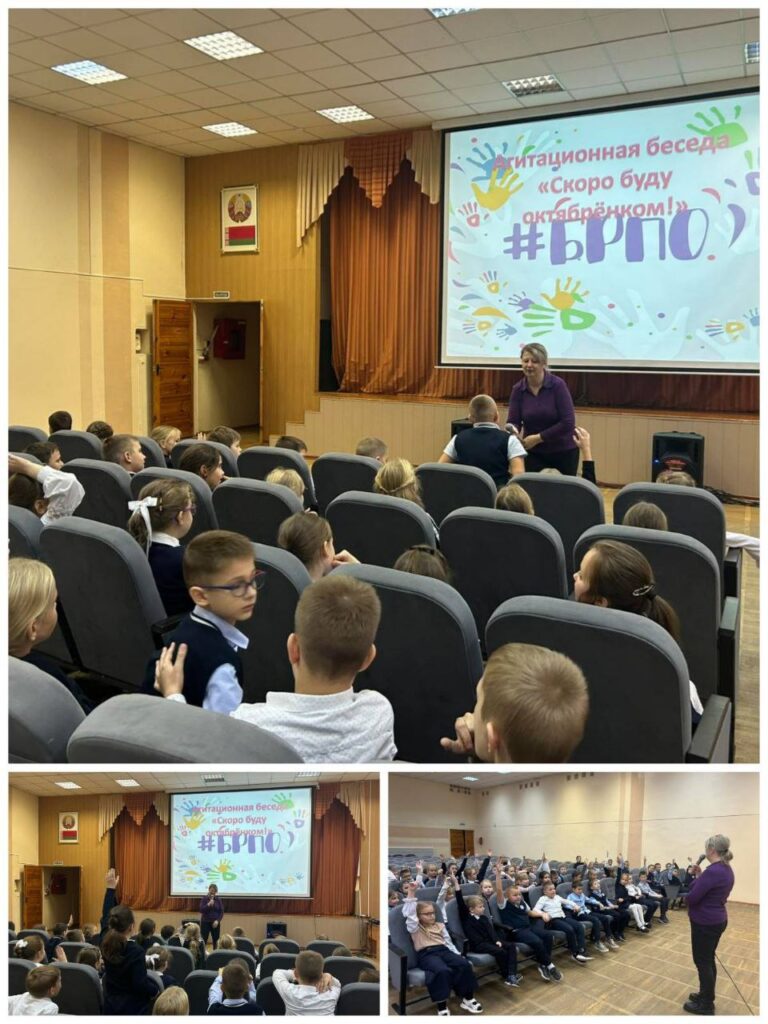 17 октября 2025 года в актовом зале нашей школы для учащихся 2-х классов была проведена рекламно — агитационная беседа «Скоро буду октябрёнком!». На которой старшая вожатая познакомила ребят с историй возникновения пионерского движения, проектами для октябрят, пионерским активом школы, логотипом, девизом. Ребята узнали чьё имя носит наша пионерская дружина. Закончилось просмотром мультфильмов «Будь в команде Огонька».