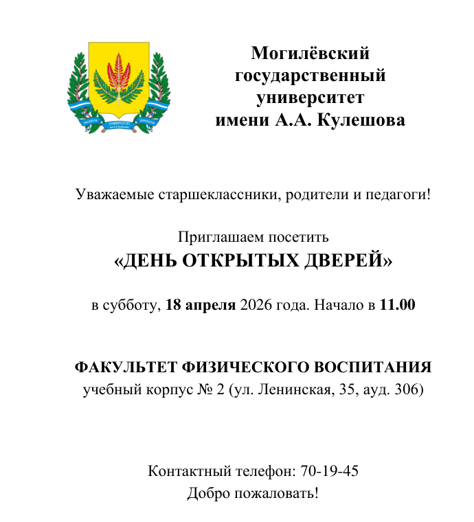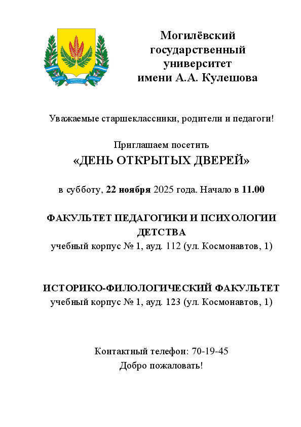 Приглашает посетить «ДНИ ОТКРЫТЫХ ДВЕРЕЙ»: