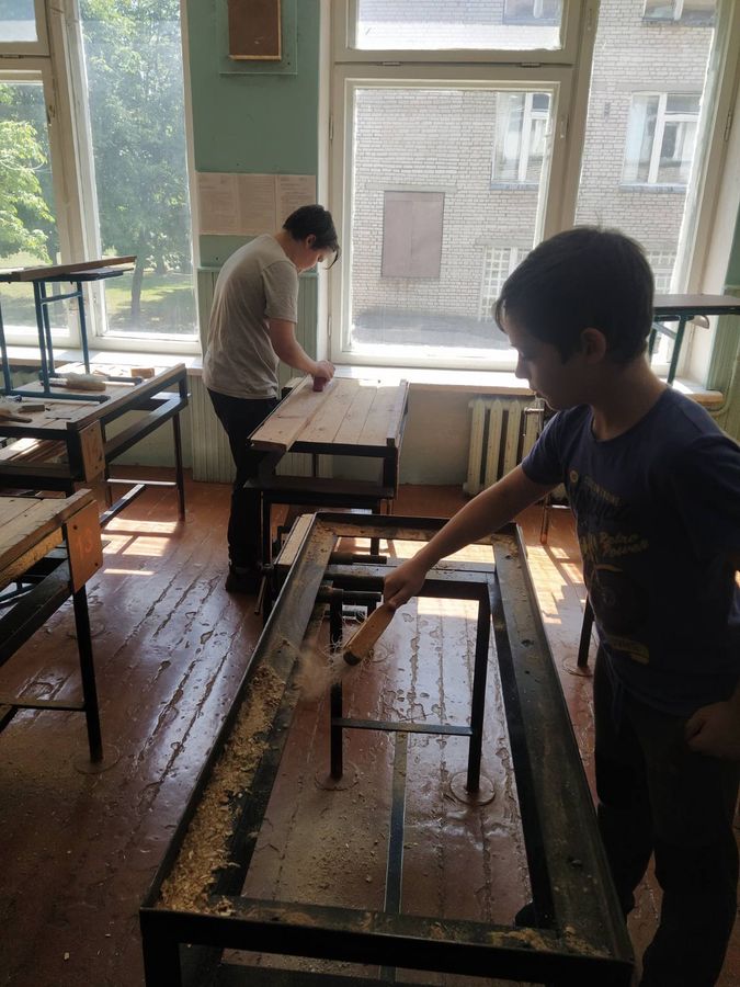 оказывает помощь в ремонте школьной мебели,