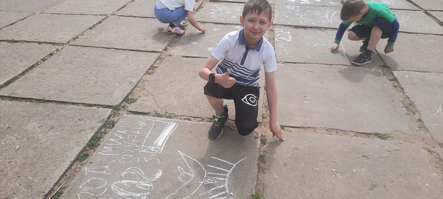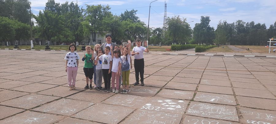 13 июня педагог – организатор вместе с ребятами провели игровую программу «Веселая тусовочка». Дети с удовольствием отвечали на различные вопросы, веселились, участвовали в конкурсах. В конце программы все ребята рисовали на асфальте все то, что им запомнилось больше всего. Самые активные были награждены памятными призами.