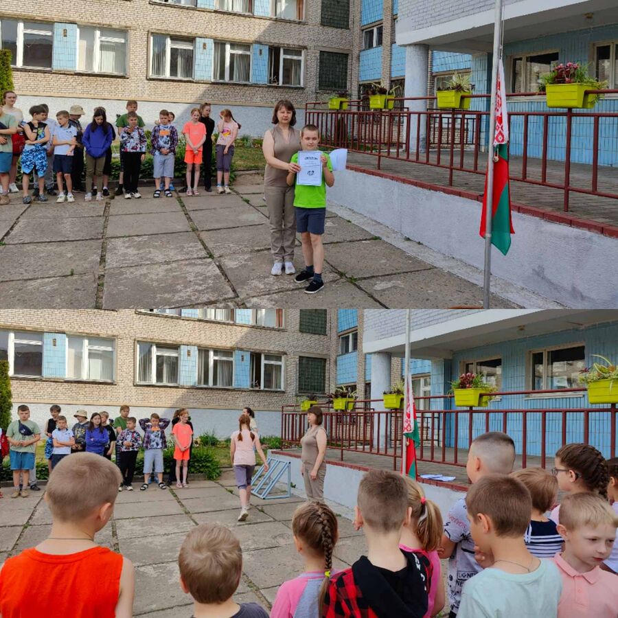 Утро в оздоровительном лагере началось с утренней зарядки и торжественной линейки. Затем ребята посетили школьную библиотеку, где прошла литературная игра - викторина «Кто умнее всех!», где ребята отвечали на вопросы, отгадывали загадки и кроссворды. Педагог-организатор провела конкурс рисунков «Мой любимый город» в рамках акции «Мая_ Зямля_Прыдняпроўе”. Дети с удовольствием рисовали. На школьном стадионе прошла спортивно-патриотическая игра «Партизанскими тропами», для укрепления здоровья школьников посредством повышения двигательной активности. В актовом зале музыкальный руководитель совместно с филармонией организовали и провели праздничный концерт «Возьмемся за руки, друзья!», посвященный открытию лагерной смены. Этот день выдался очень насыщенным, все остались довольными.