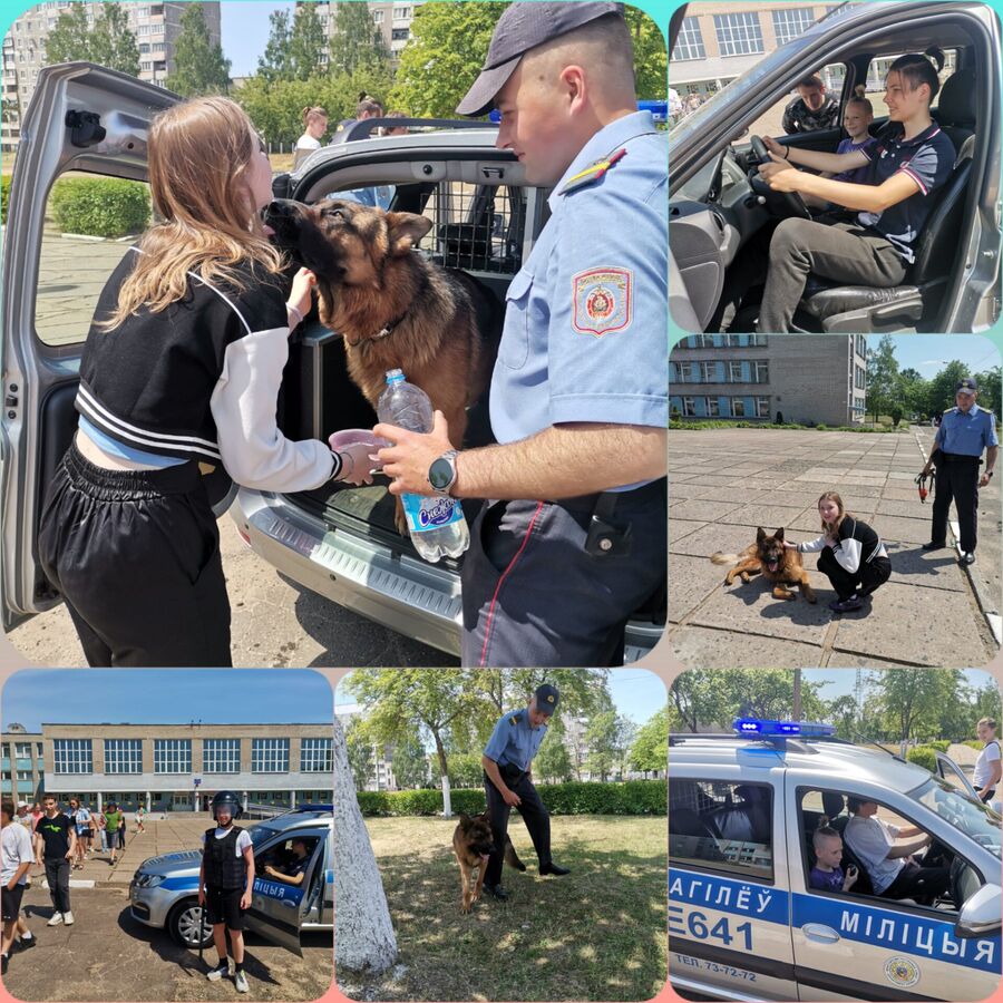 19 июня 2023 года воспитанники профильного оздоровительного лагеря с дневным пребыванием «Звезда» посетили Октябрьский отдел Департамента охраны МВД Республики Беларусь. Ознакомительная экскурсия началась с просмотра видеоролика о работе Департамента охраны. Ребятам были предоставлены образцы оружия и специальных средств, которые можно было примерить, а также подержать в руках. Отдельный интерес у учащихся вызвало знакомство со служебным автотранспортом. А наиболее яркие впечатления и восторг у ребят вызвала демонстрация показательных выступлений милиционера-кинолога со служебной собакой. Также ребята посетили питомник служебных собак.
