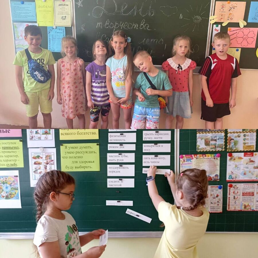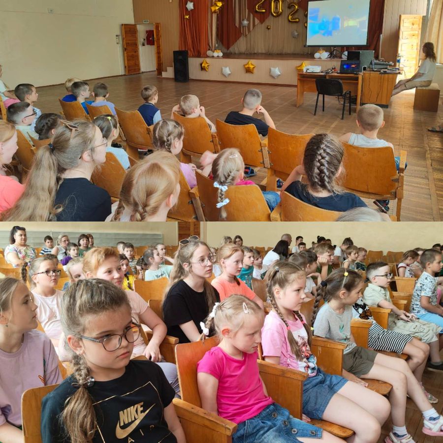 Позитивно и насыщенно прошёл день в оздоровительном лагере «Родник». На минутках безопасности жизнедеятельности были проведены беседы по укреплению знаний по ПДД и ПБП. В отрядах прошли мероприятия: «Путешествие в страну дорожных знаков», викторина «Зелёный, желтый, красный», познавательный час «Эти вредные и полезные привычки». На викторине по ПДД «Красный, желтый, зеленый», которое провела педагог-организатор лагеря Цырук О.О., ребята очень активно отвечали на вопросы и выполняли задания, с увлечением разгадывали «Дорожные ребусы», и проходили «Лабиринт». Инструктор по ФК провел спортивно-игровую программу «Сказочные эстафеты». Между собой соревновались 2 команды: «Светофорики» и «Пешеходы». С небольшим отрывом победила команда «Пешеходы». Музыкальный руководитель организовала и провела танцевальный марафон «Летний драйв», где ребята показали свои танцевальные навыки. Занятие закончилось веселой дискотекой.
