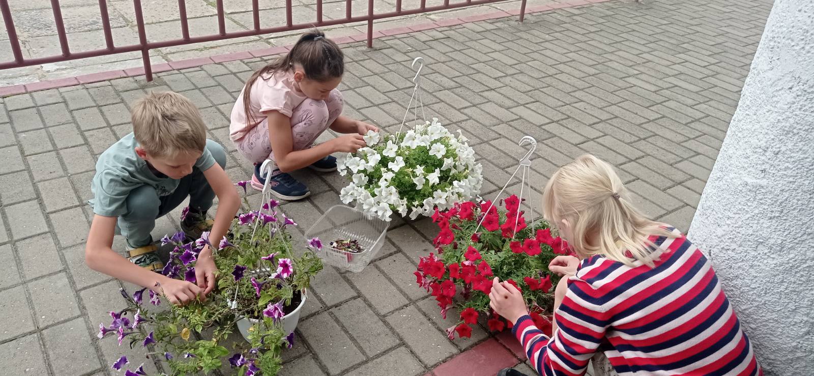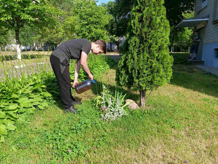 экоклуба "Зелёный след" помогали ухаживать за растениями