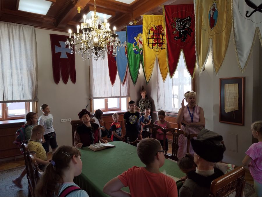13.06.2023 в рамках Года мира и созидания воспитанники оздоровительного профильного лагеря с дневным пребыванием "Звезда" посетили историко-демонстрационный зал управления внутренних дел Могилевского облисполкома, где им рассказали об основных этапах развития милиции Могилевщины, остановившись на наиболее значимых моментах, таких, как героический подвиг батальон милиции под командованием капитана Владимирова. В июле 1941 бойцы НКВД прикрывали северный подступ к Могилеву и 7 дней под шквалами минометного огня сдерживали вражеский натиск без воды, еды и сна. Сломить сопротивление немцам удалось лишь с помощью авиации и танков. Из 250 бойцов батальона выжили только 19. В последнем бою погиб и командир. Ребята увидели экспонаты, посвященные резонансным уголовным делам, обратили внимание на витрину с самодельным оружием, уголок с техникой, используемой криминалистами, старыми камерами, фотоаппаратами и многое другое.