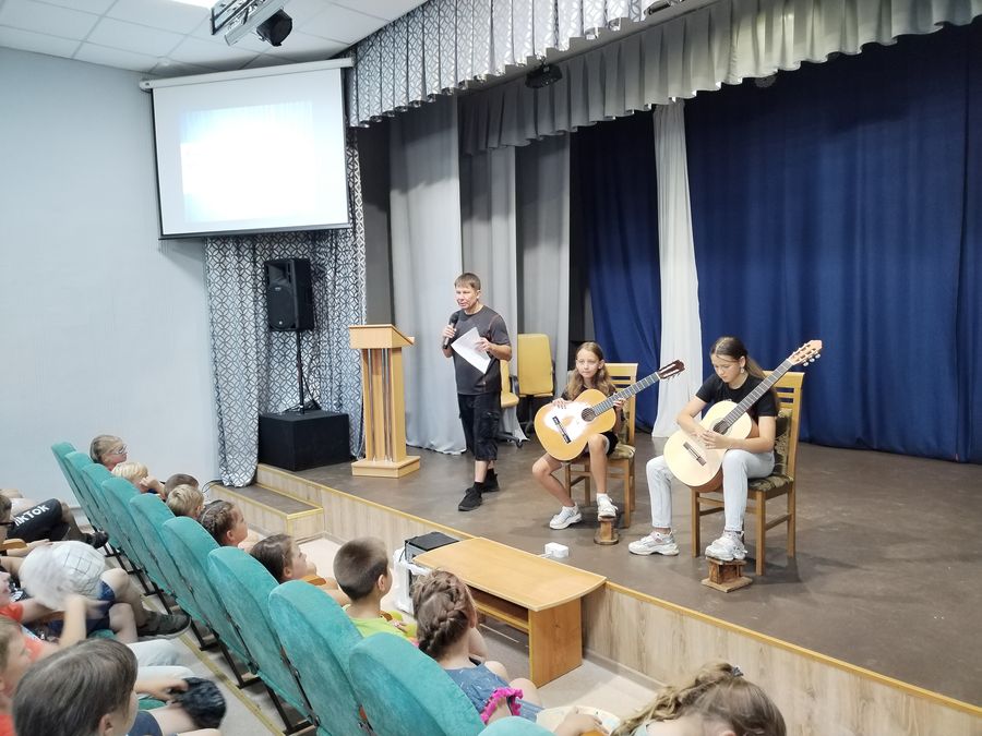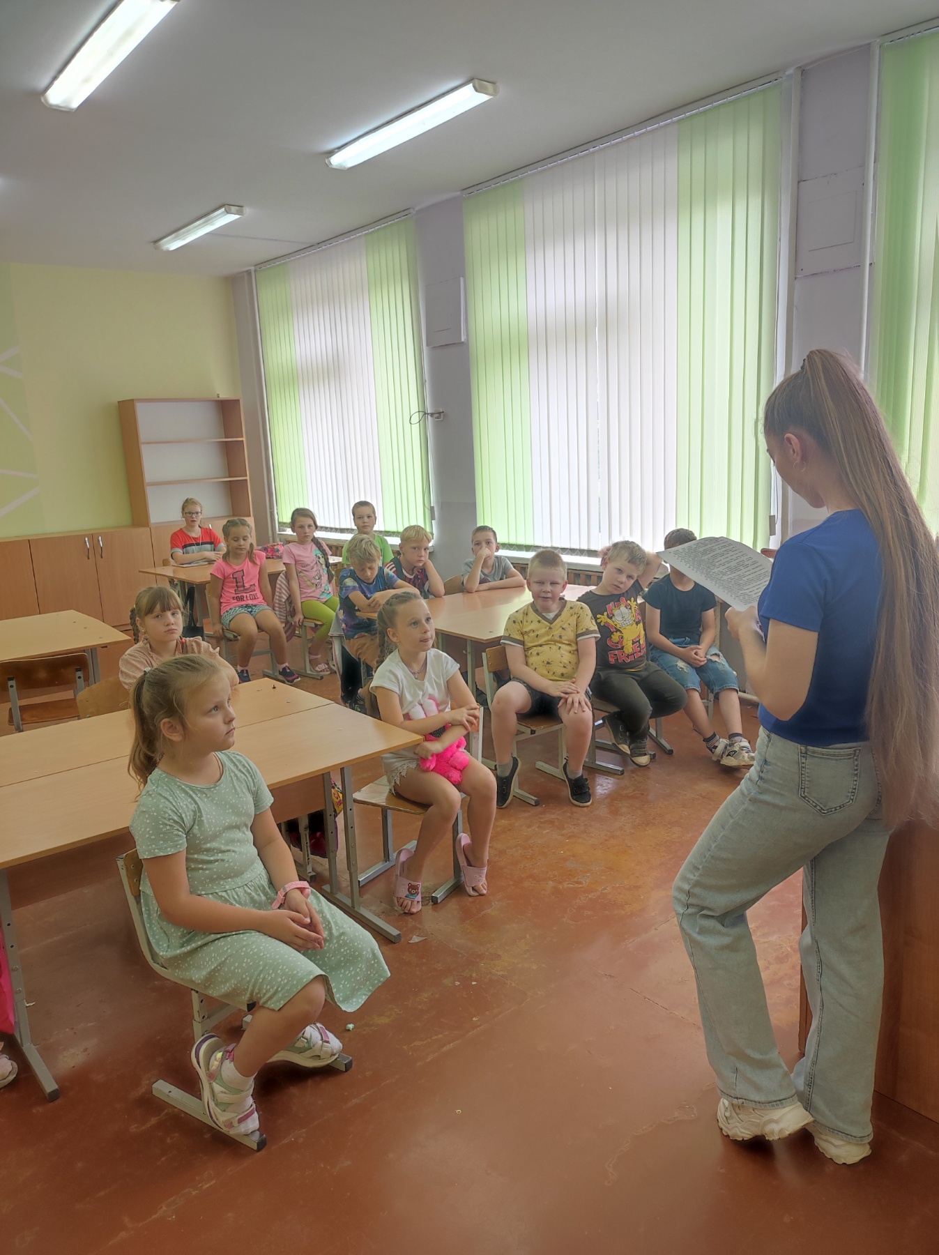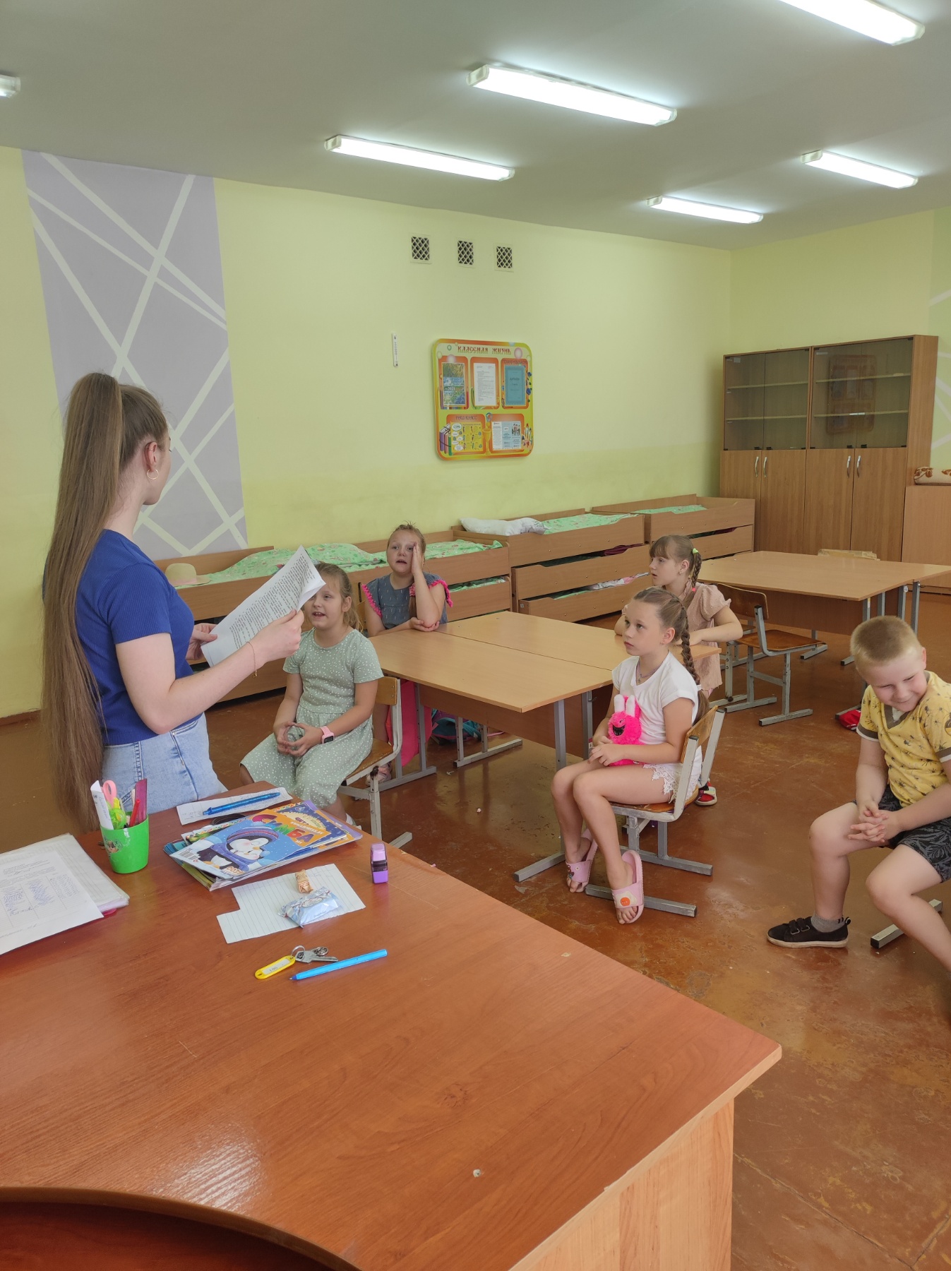 2 июня 2023 года в оздоровительном лагере прошёл День знакомств под девизом «Расскажи мне о себе». Педагог-организатор Цырук О.О. провела игру «Давайте познакомимся», где ребята познакомились друг с другом. Затем ребята посетили школьную библиотеку, где для них прошло увлекательное путешествие «В гостях у лета». В спортивном зале были проведены весёлые старты «Богатырские забавы». Это было яркое, эмоциональное зрелище, праздник радости, здоровья, успеха. Спортивному соревнованию сопутствовал задор и спортивный азарт школьников. Кроме этого, ребята побывали на музыкальном занятии, где поучаствовали в танцевально – игровом развлечении «Путешествие в мире танца». В актовом зале прошел киноурок «Время патриотов» в рамках республиканского киномарафона «Смотри и помни», где ребята просмотрели видеоролик «Геноцид. Дело№». Окончанием сегодняшнего дня стало посещение театра кукол, где ребята увидели представление «Самый маленький самолет на свете».