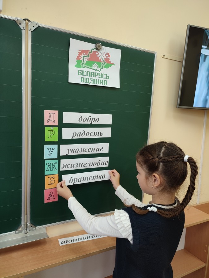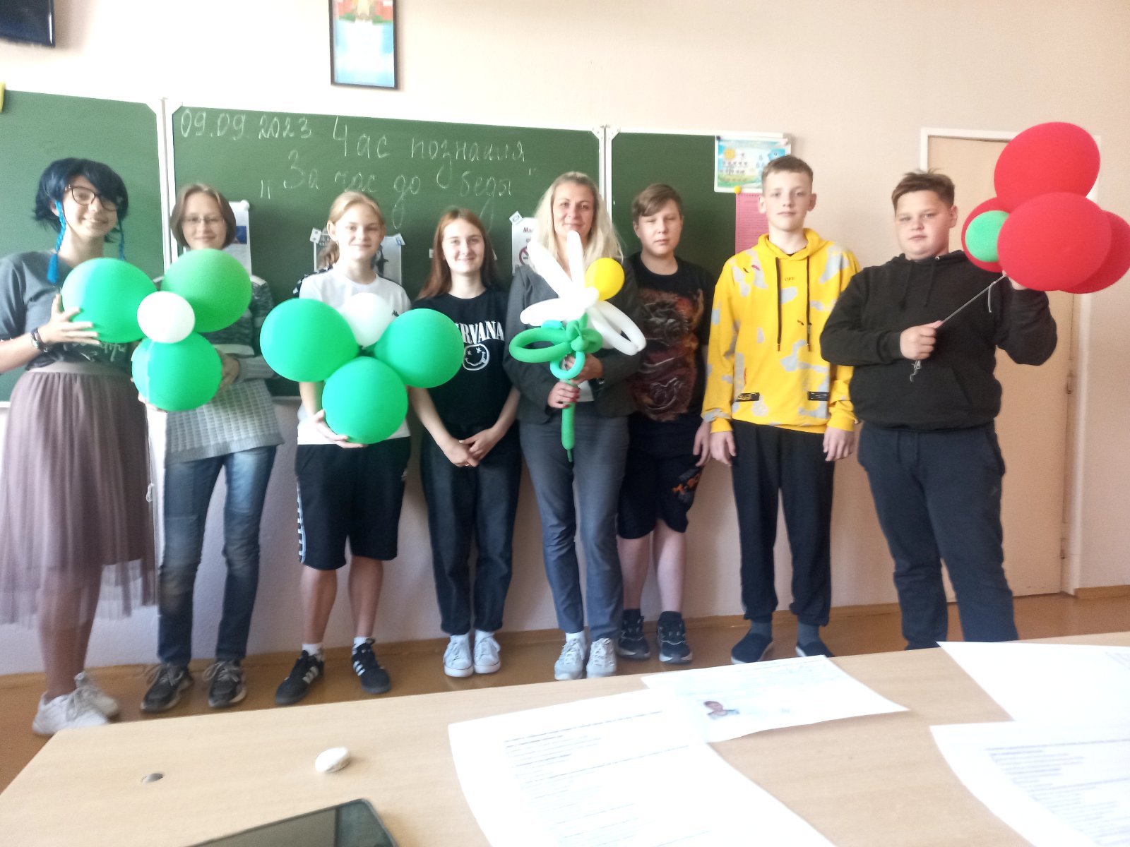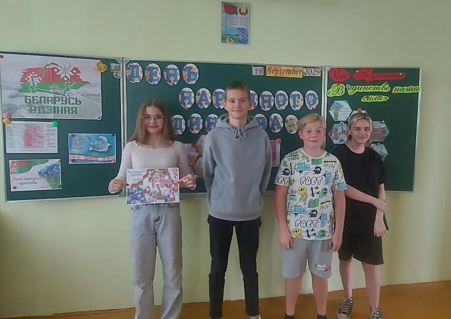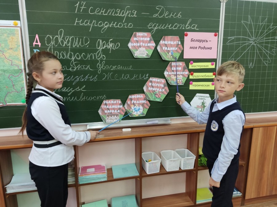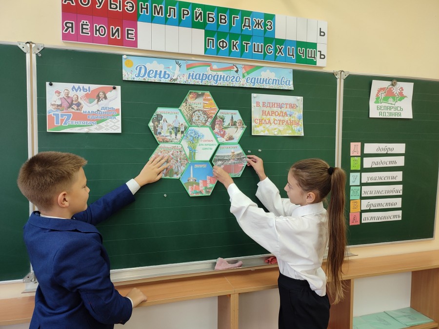 16 сентября в 8 "В" классе прошёл час познания "В единстве наша сила". Ребята вспомнили события 17 сентября 1939 года, в результате которых воссоединился белорусский народ. Учащиеся высказались о значимости данного события, важности единства народа для построения сильной процветающей Беларуси, совершили виртуальное путешествие по Беларуси, рассуждали над понятиями «единство», «общность взглядов», познакомились с экономикой страны, остановились на значимых местах своей малой родины, работали с пословицами и поговорками, слушали песни о родной Беларуси. В ходе мероприятия ребята поняли важность единения всех людей для успеха и процветания страны.