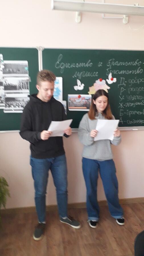 16 сентября в рамках шестого школьного дня среди учащихся 9 классов пошел час общения на тему"Единство и братство - лучшее богатство",посвящённый Дню народного единства.Цель мероприятия-воспитание у учащихся гражданственности,патриотизма,формирование национального самосознания.