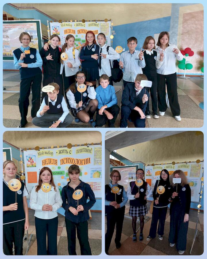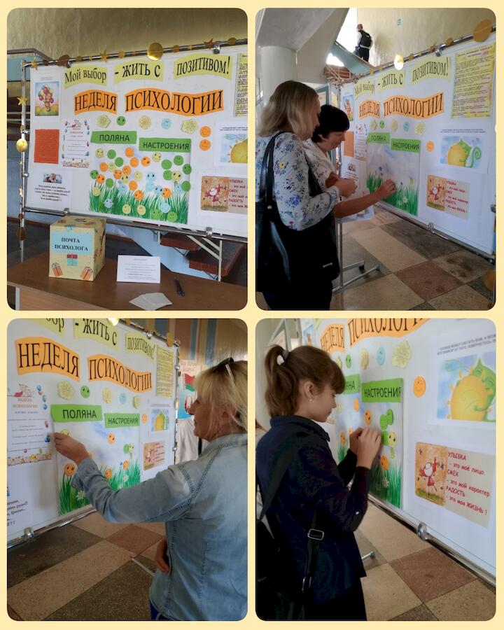 С 11 по 16 сентября в рамках городского проекта "Могилев - город комфорта и позитива" в нашей школе проходила акция "Неделя психологии". Каждый день был заполнен интересными и яркими мероприятиями. В этот период работали интерактивные площадки: "Поляна настроения" "Почта психолога", "Давайте говорить друг другу комплименты", "Ларец предсказаний", в которых принимали участие учащиеся, их родители и педагоги школы. Все мероприятия, проведённые в рамках "Недели психологии", способствовали сохранению и укреплению психологического здоровья. Акция вызвала положительный отклик у всех участников, в школе ощущалась атмосфера добра, позитива и хорошего настроения!