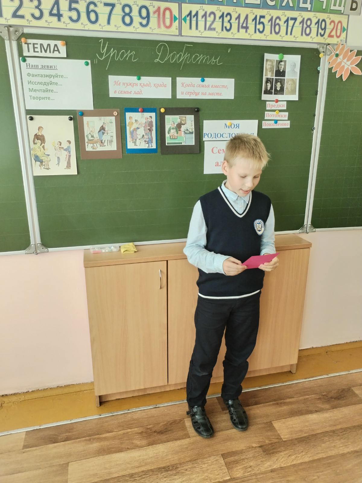 29 сентября в 3а классе было проведено мероприятие "Если добрый ты"Это мероприятие совпало с Днём пожилого человека. Дети познакомились с понятием " милосердие", составили "Ромашку добрых дел" ,чем радуют своих близких, составили добрые пожелания для бабушек и дедушек и словарик со словом "добро"