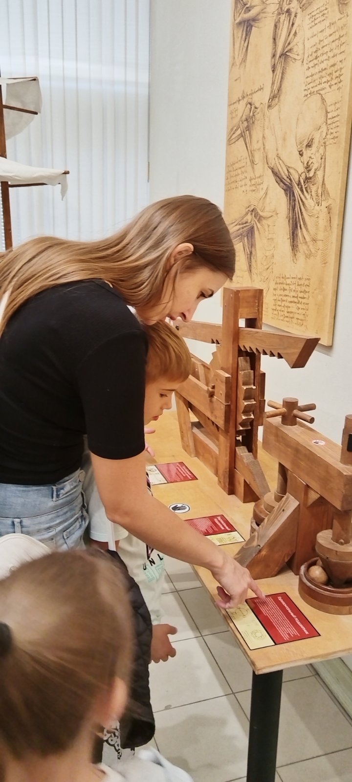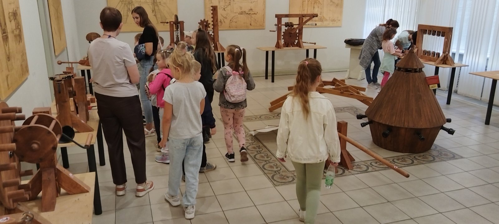 парашют, вертолёт, спасательный круг и ласты - такие знакомые всем вещи. Но знаете ли вы их историю возникновения? В субботу, 30 сентября, учащиеся 2 «А» класса посетили музей им. П. В. Масеникова, в котором был представлен выстовочный проект «Музей изобретений. Леонардо да Винчи», посвященный творчеству ученого, художника, скульптора. Музей изобретений да Винчи представлен большим числом репродукций картин и технических изобретений изготовленных по оригинальным чертежам мастера. Записи в рукописях были зашифрованы своеобразной «тайнописью» – написаны справа налево зеркальным шрифтом, нередко мастер намеренно делал ошибки в чертежах для защиты авторского права на случай кражи записей . Выставочный проект попытался воплотить идеи да Винчи в жизнь, сконструировав различные механизмы. Дети получили много впечатлений. Особенно им понравилась зеркальная комната, велосипед, мост. Многие экспонаты можно было привести в движение собственными руками. Кроме того, музей были приглашены и родители, которые также не остались без положительных эмоций.