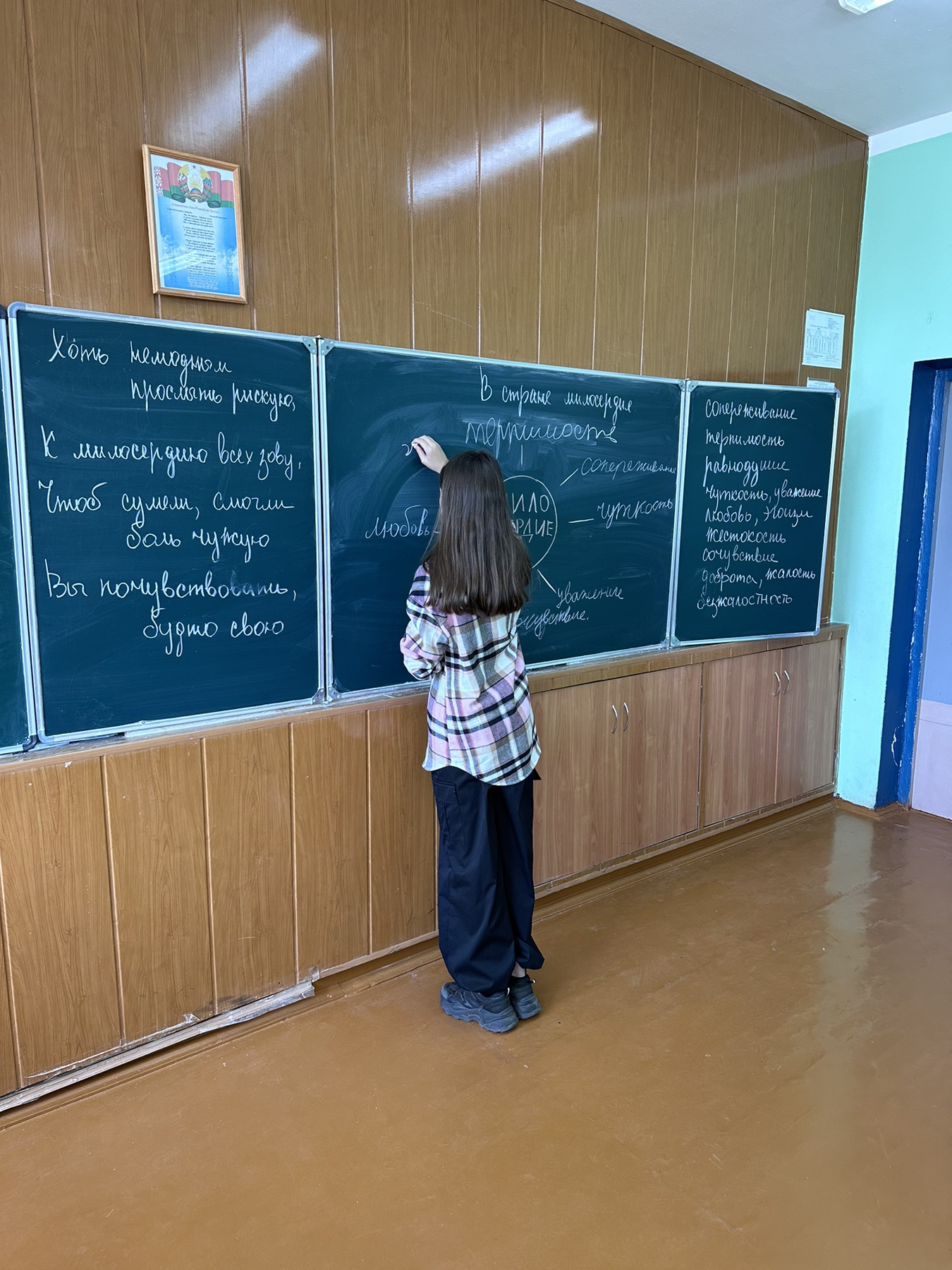 30.09.2023 В 5 в классе прошло внеклассное мероприятие « в стране милосердия». Ребята поучаствовали в игре «паутинка добра», составили кластер « солнышко милосердия», обсуждали притчи «морская звезда» и «бинт надежды». Мероприятие прошло в теплой и продуктивной атмосфере.