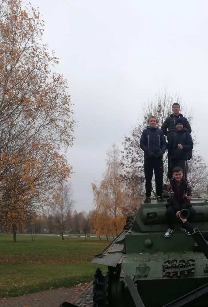 Буйничское поле писатель Константин Симонов описал в своем романе "Живые и мертвые". Здесь проходил передний край советской обороны. Именно через Могилев группа немецкой армии "Центр" направлялась на Москву, планируя организовать в Могилеве перевалочный пункт. Долгих 2 недели в разы уступающие защитники города сопротивлялись врагам, значительно изменив ход войны. Немецкие войска в страхе молчали о поражении, сказав, что город давно захвачен. Позже Могилев назовут "отцом Сталинграда". А находившийся здесь, тогда военный корреспондент, а позже известный писатель Симонов завещает развеять здесь свой прах. Сегодня на месте танковых сражений создан мемориал, хранящий память военных лет, который сегодня посетили учащиеся 9-11 классов.