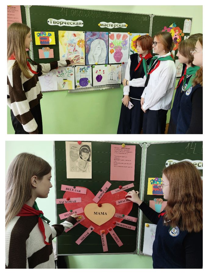 13 октября 2023 года учащиеся группы продленного дня совместно с членами ОО «БРПО» им. А. Н. Поляков и ПО ОО «БРСМ» им. М.Т. Романова приняли участие в творческой мастерской, посвященной Дню матери «Букет для мамы». На мероприятии ребята изготавливали подарки для любимой мамы и бабушки. Дети вложили в работу не только мастерство и терпение, но и талант, фантазию и, конечно же, любовь к родному человеку. Все участники творческой мастерской получили массу эмоций и хорошее настроение.