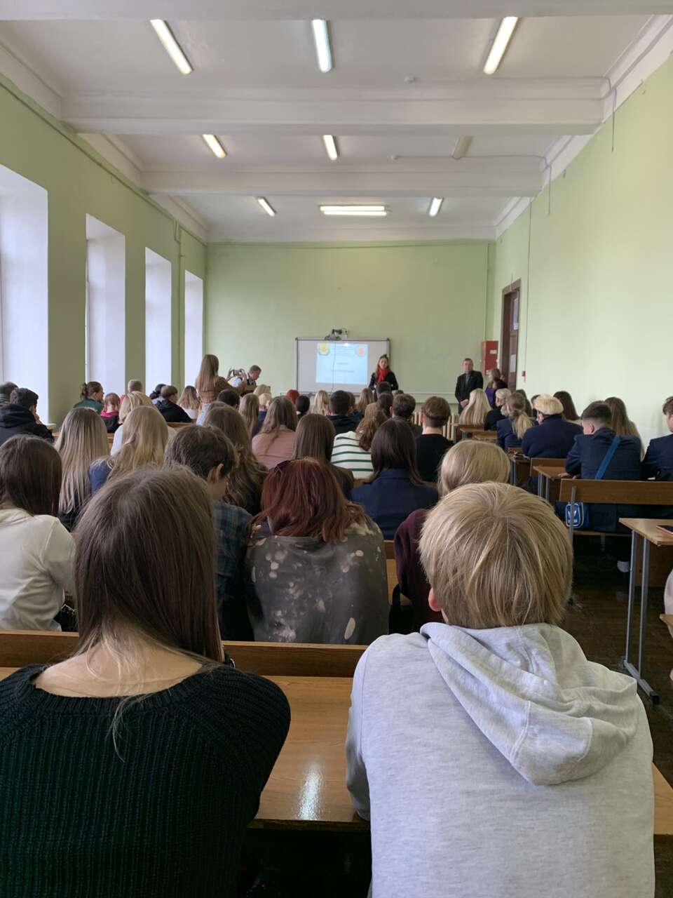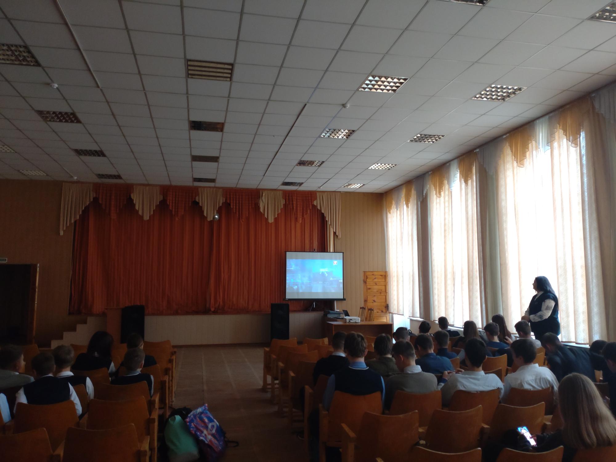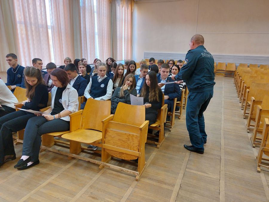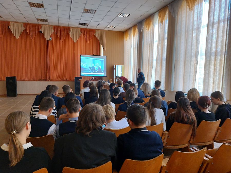 17.10.2023 в рамках профориентационной работы состоялась встреча учащихся 11-х классов с инженером ГМТОиО ПАСО-6 МГОЧС Борисенко А.В. В ходе беседы Алексей Викторович познакомил учащихся с порядком отбора и поступления в ГУО «Университет гражданской защиты Министерства по чрезвычайным ситуациям». Университет осуществляет подготовку с высшим образованием по специальностям: ««Предупреждение и ликвидация чрезвычайных ситуаций», «Пожарная и промышленная безопасность». В завершении мероприятия учащимся был продемонстрирован видеоролик.