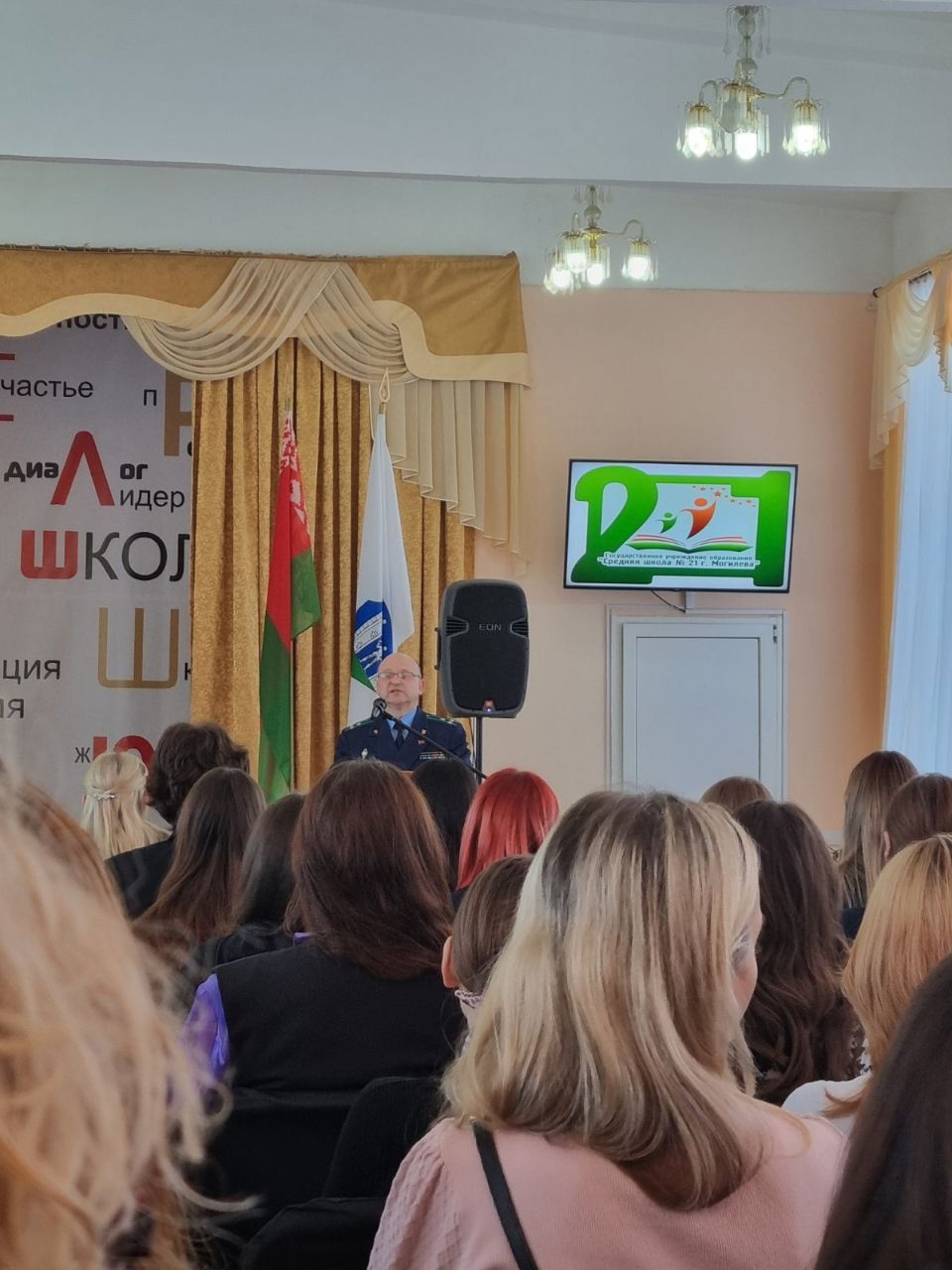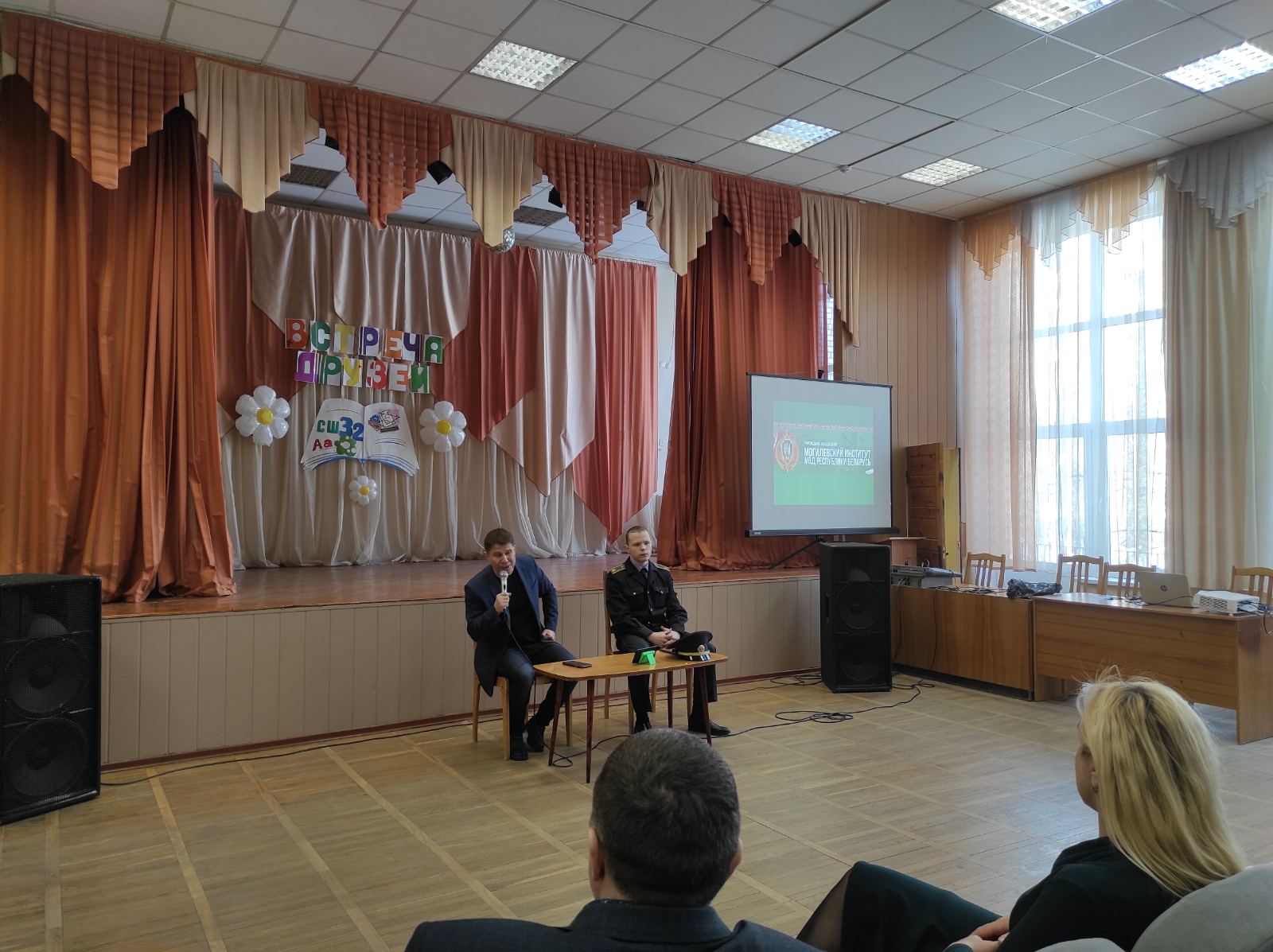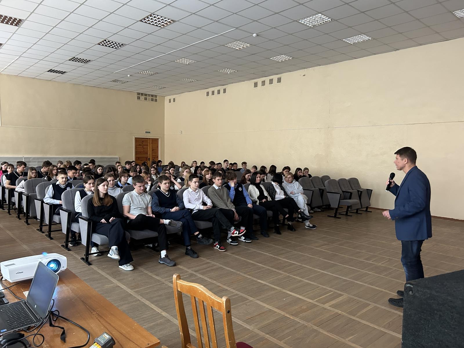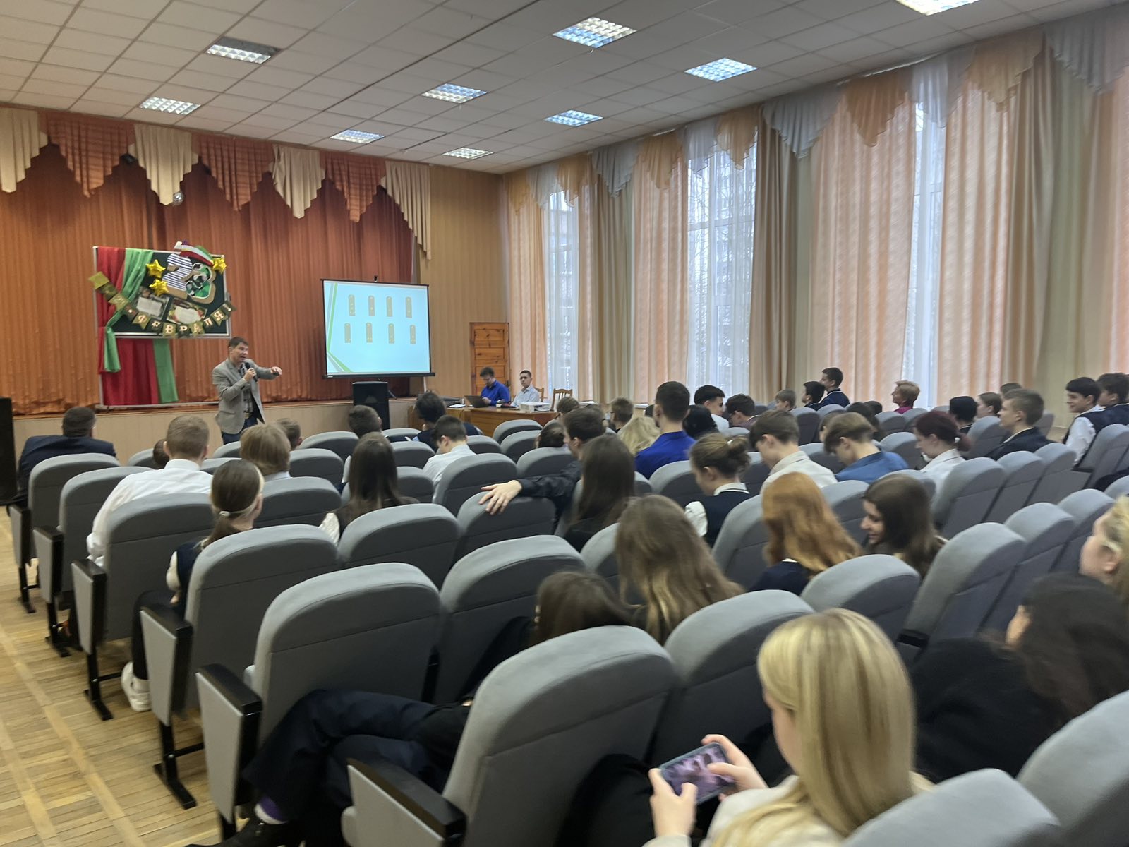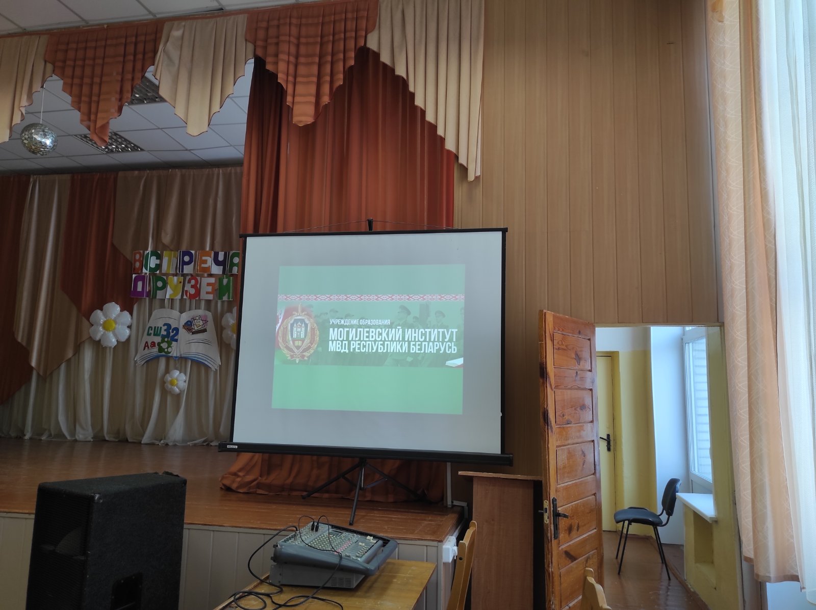 В рамках работы по профессиональной ориентации старшеклассников, прошла встреча с курсантом Могилёвского института МВД Республики Беларусь. В ходе беседы учащиеся узнали об условиях поступления, обучения, проживания, а так же обсудили ряд других вопросов, интересующих тех, кто в будущем решил связать свою профессиональную деятельность с системой правоохранительных органов.