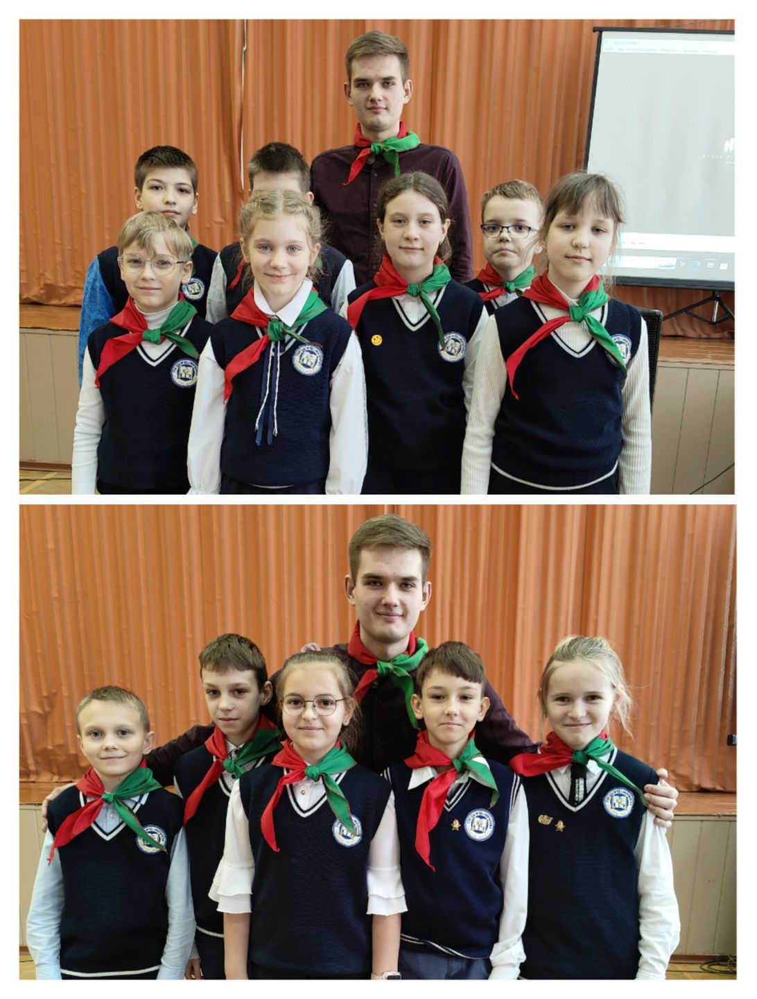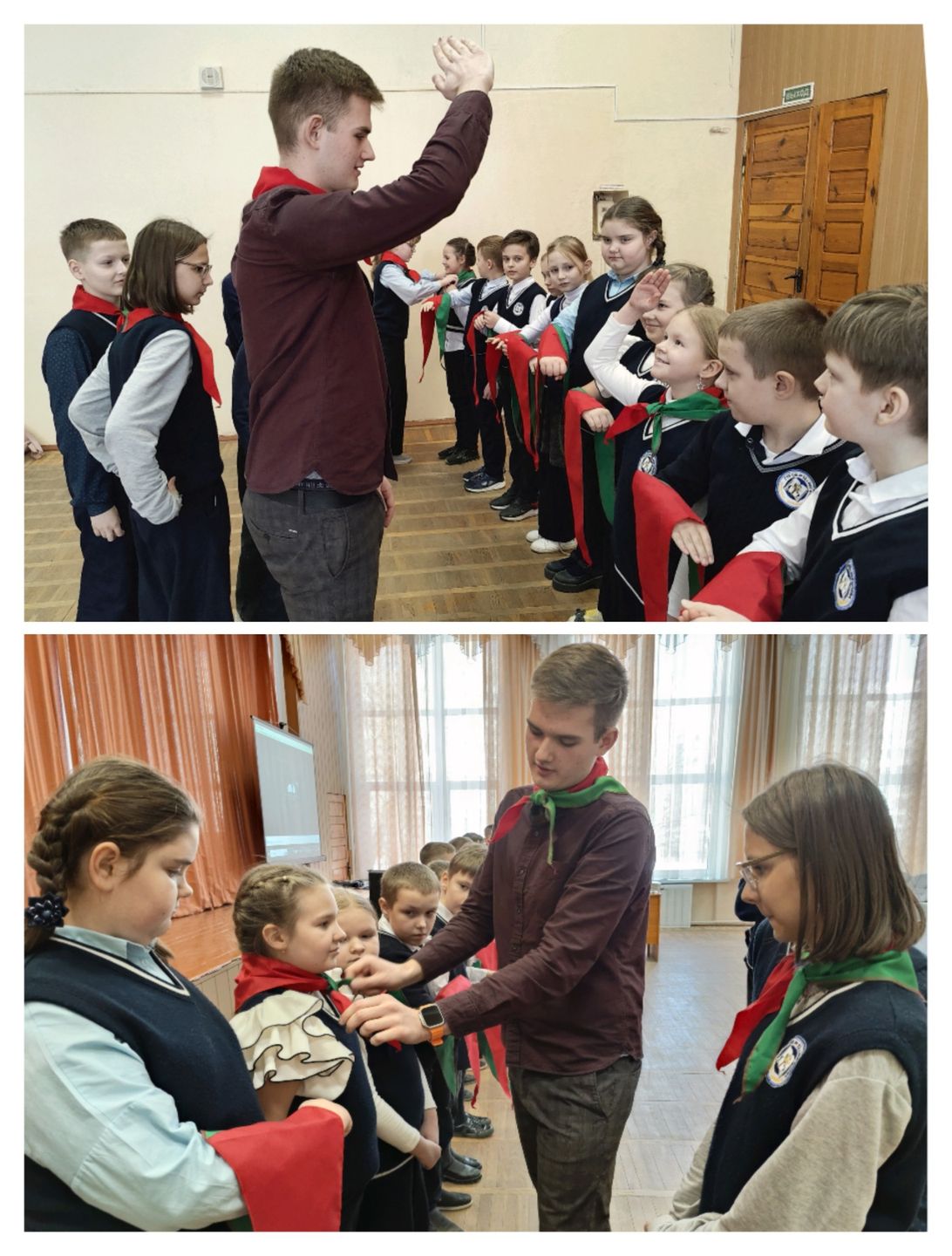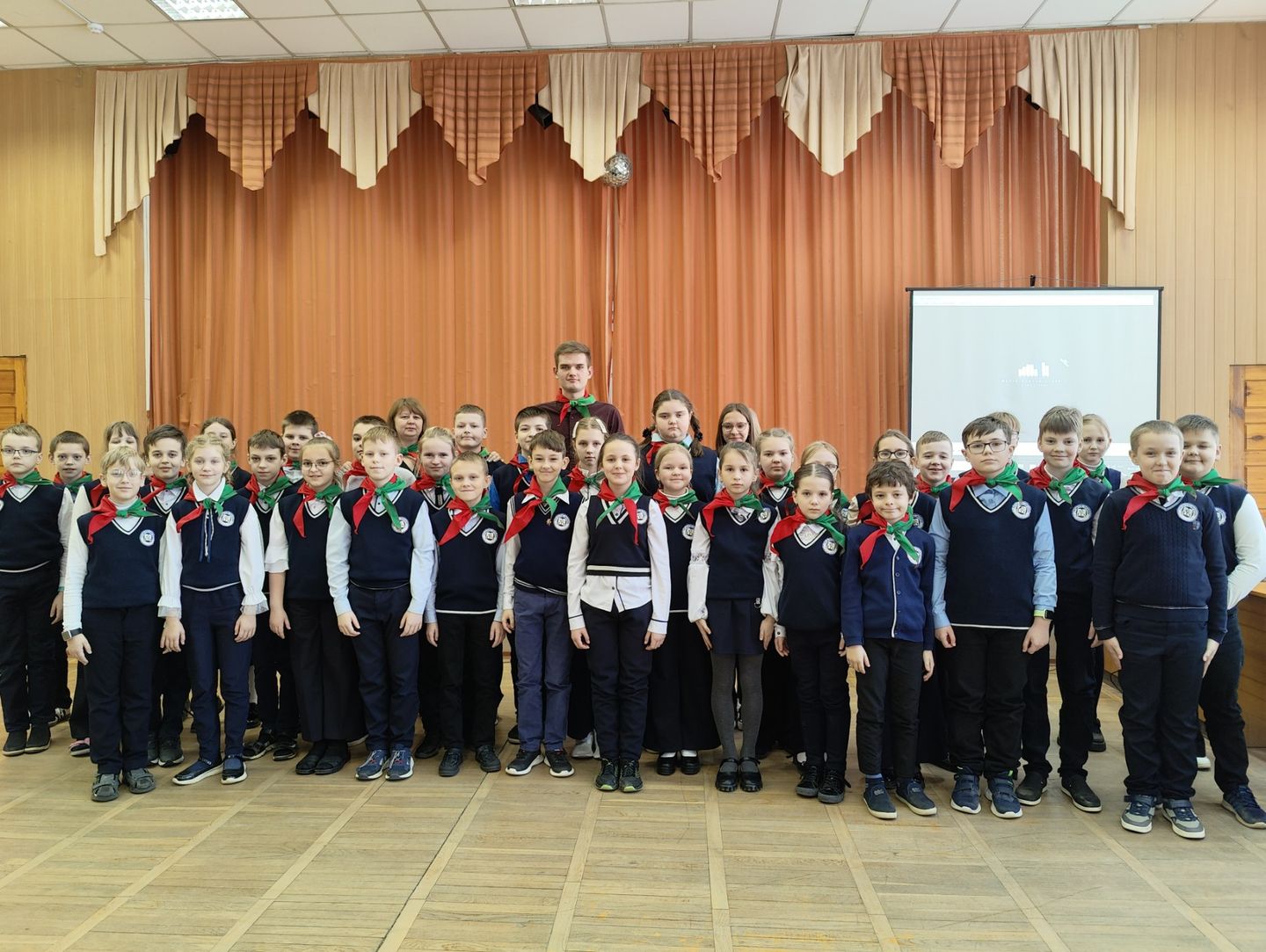 8 февраля 2024 года прошёл торжественный праздник, посвящённый приёму в ряды пионеров лучших учащихся 4-х классов. Ребята прочли торжественное обещание, затем старшие вожатые пионеры дружины повязали пионерский галстук. И вот теперь ребята отдают свой первый пионерский салют. В ходе праздника ребята посмотрели видеоролики про юных героев-антифашистов, обсудили в открытом диалоге просмотренное, ответили на ряд вопросов, после исполнили песню пионеров.
