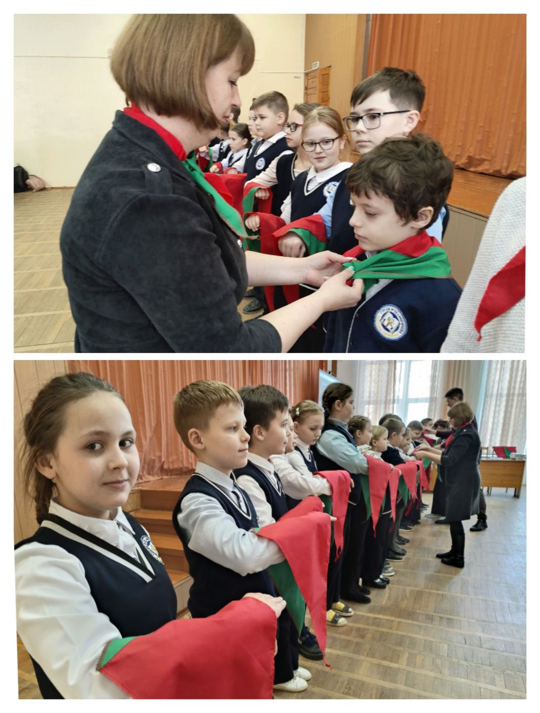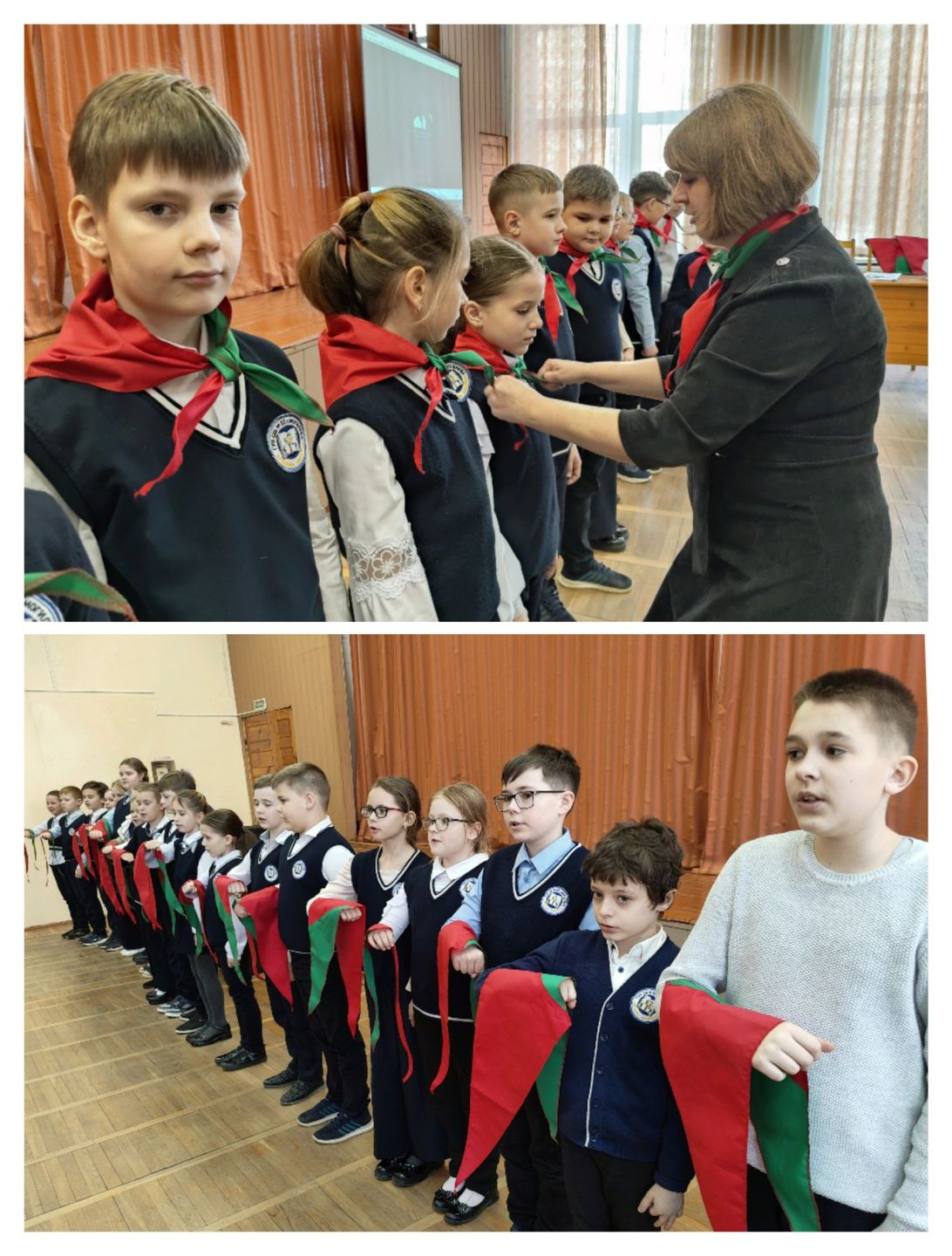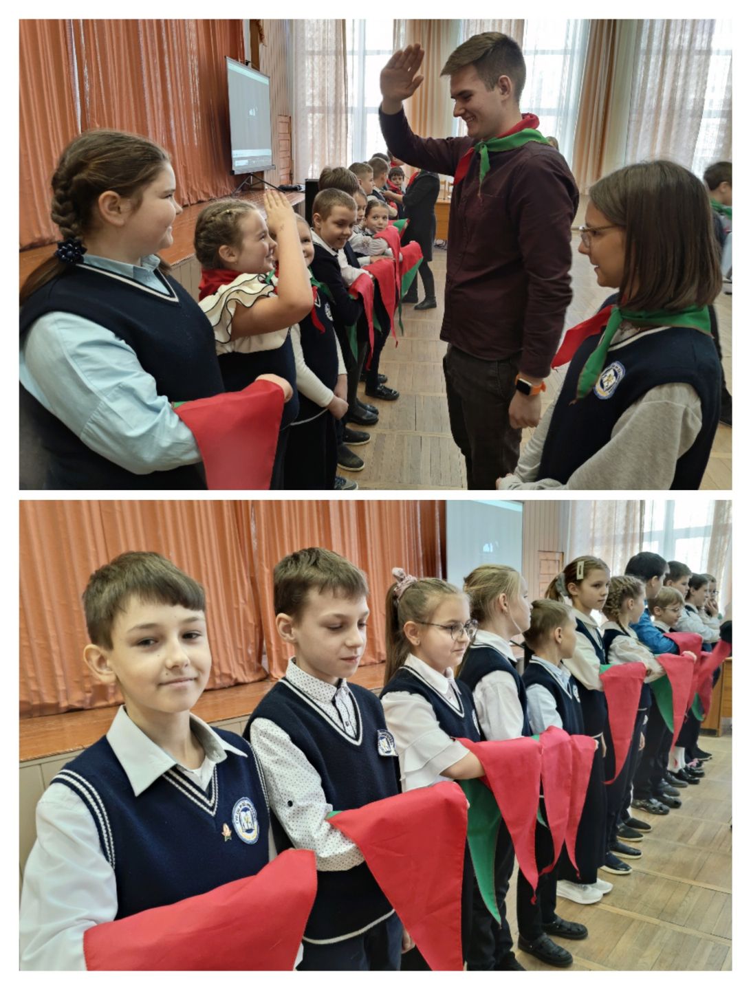 8 февраля 2024 года прошёл торжественный праздник, посвящённый приёму в ряды пионеров лучших учащихся 4-х классов. Ребята прочли торжественное обещание, затем старшие вожатые пионеры дружины повязали пионерский галстук. И вот теперь ребята отдают свой первый пионерский салют. В ходе праздника ребята посмотрели видеоролики про юных героев-антифашистов, обсудили в открытом диалоге просмотренное, ответили на ряд вопросов, после исполнили песню пионеров.