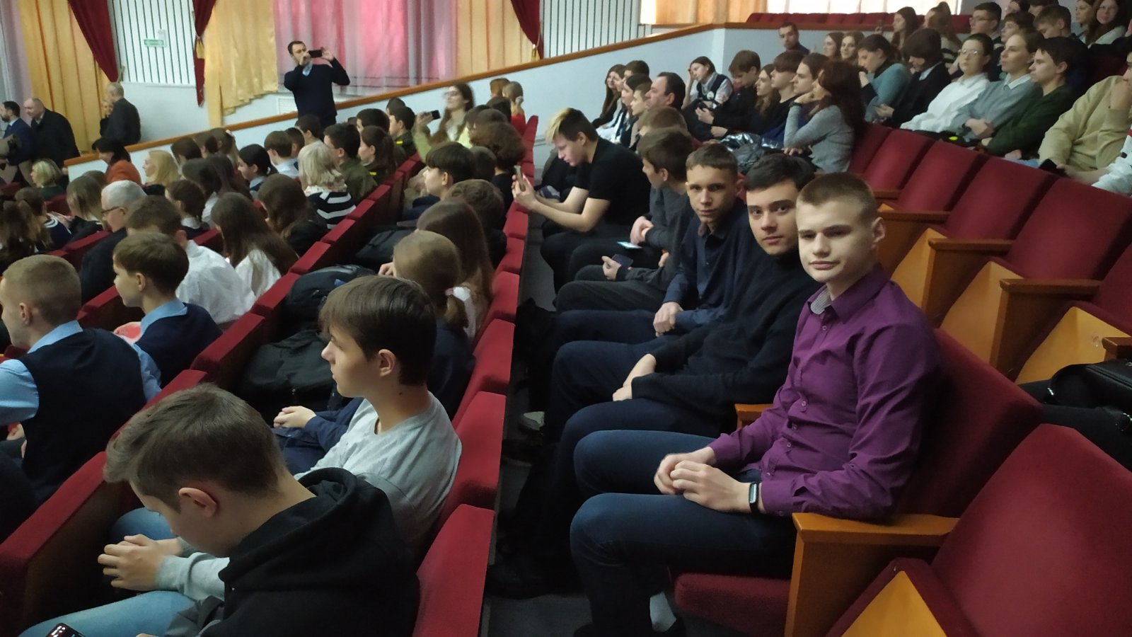 проходило в кинотеатре "Космос". С учащимися провели музыкальную