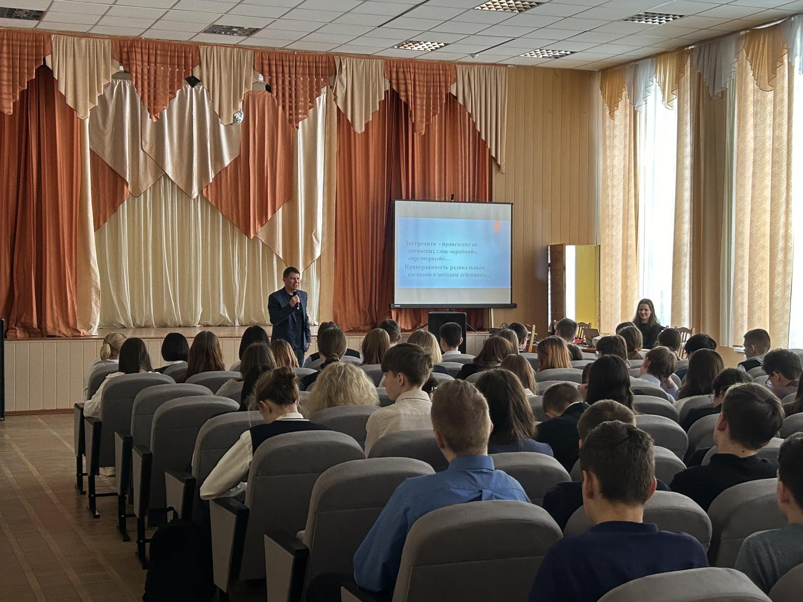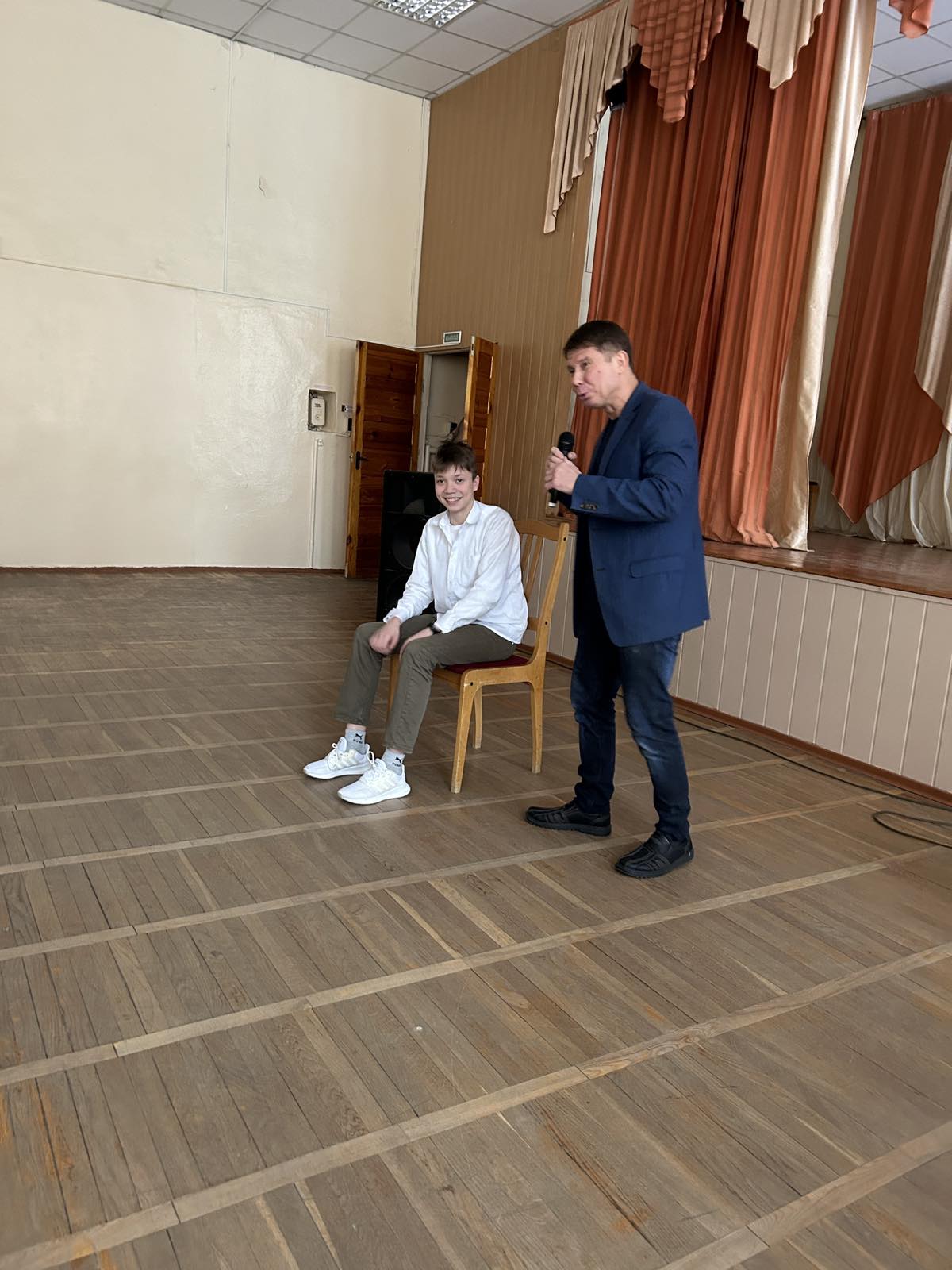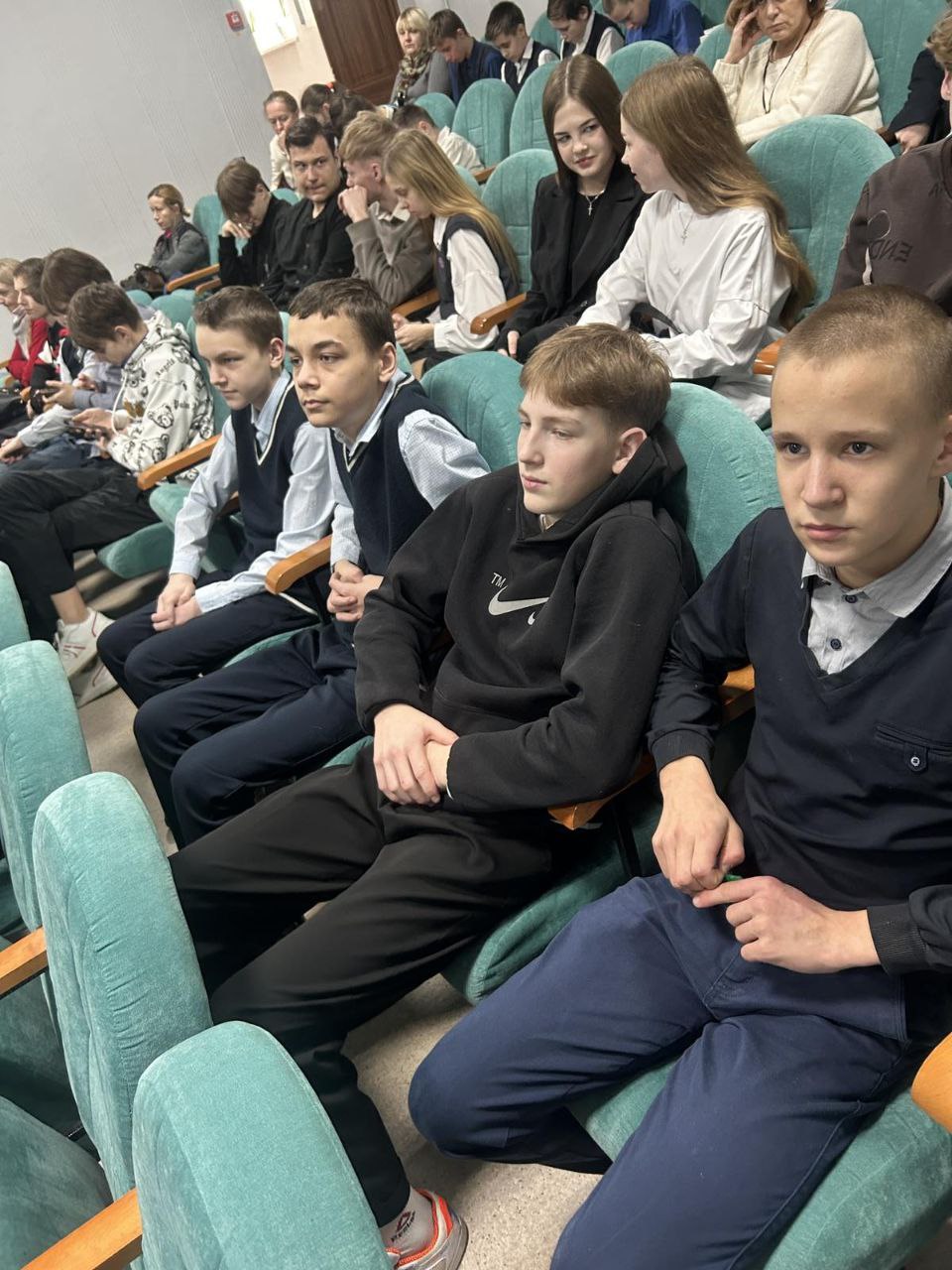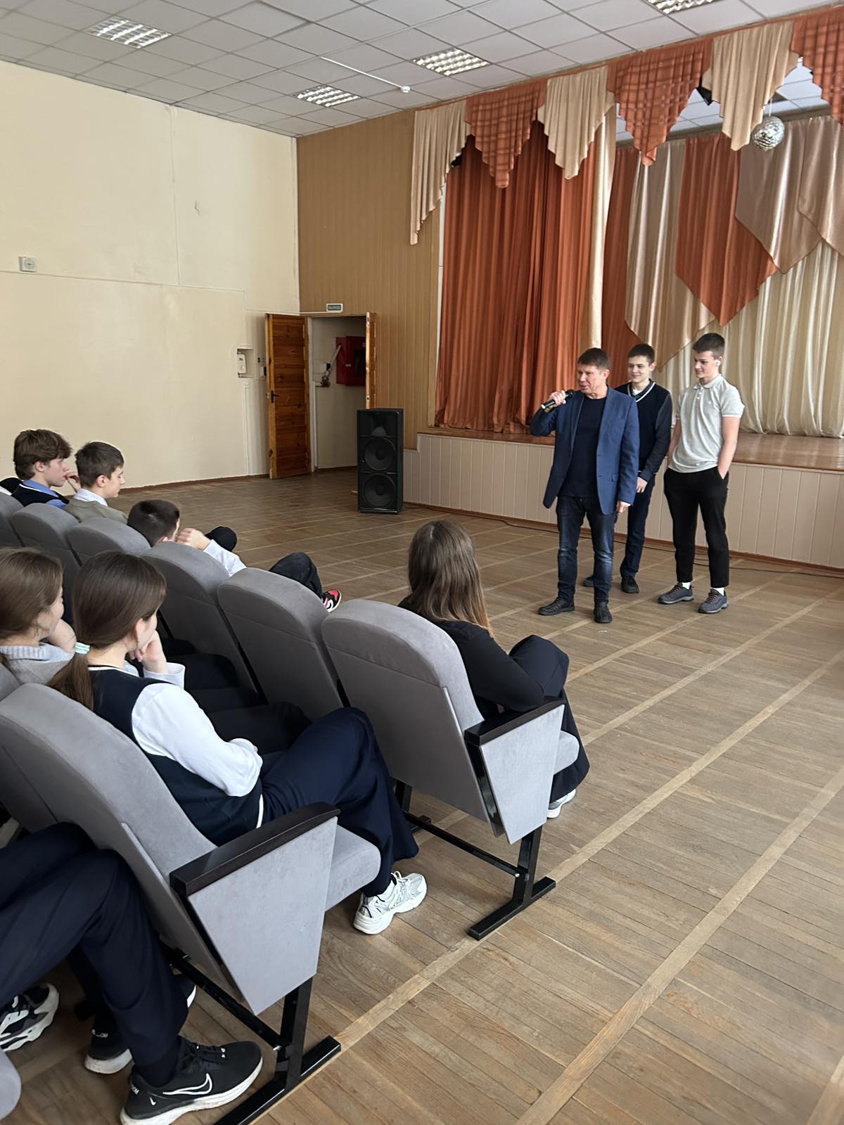 06.02.2024 в рамках работы по военно-патриотическому воспитанию прошла диалоговая площадка " На страже мира" для учащихся нашей школы, а также школ 7 и 44. На мероприятии присутствовали приглашенный гость, подполковник в отставке, ветеран вооруженных сил, Данилин Геннадий Николаевич. Его рассказ об армейских буднях, о послевоенном восстановлении народного хозяйства, вызвал живой интерес участников, они активно включились в диалог, получив много интересной и полезной информации. Так же в ходе мероприятия со сцены прозвучали песни о войне в исполнении ученицы 9 "Б" класса Волковой Варвары.