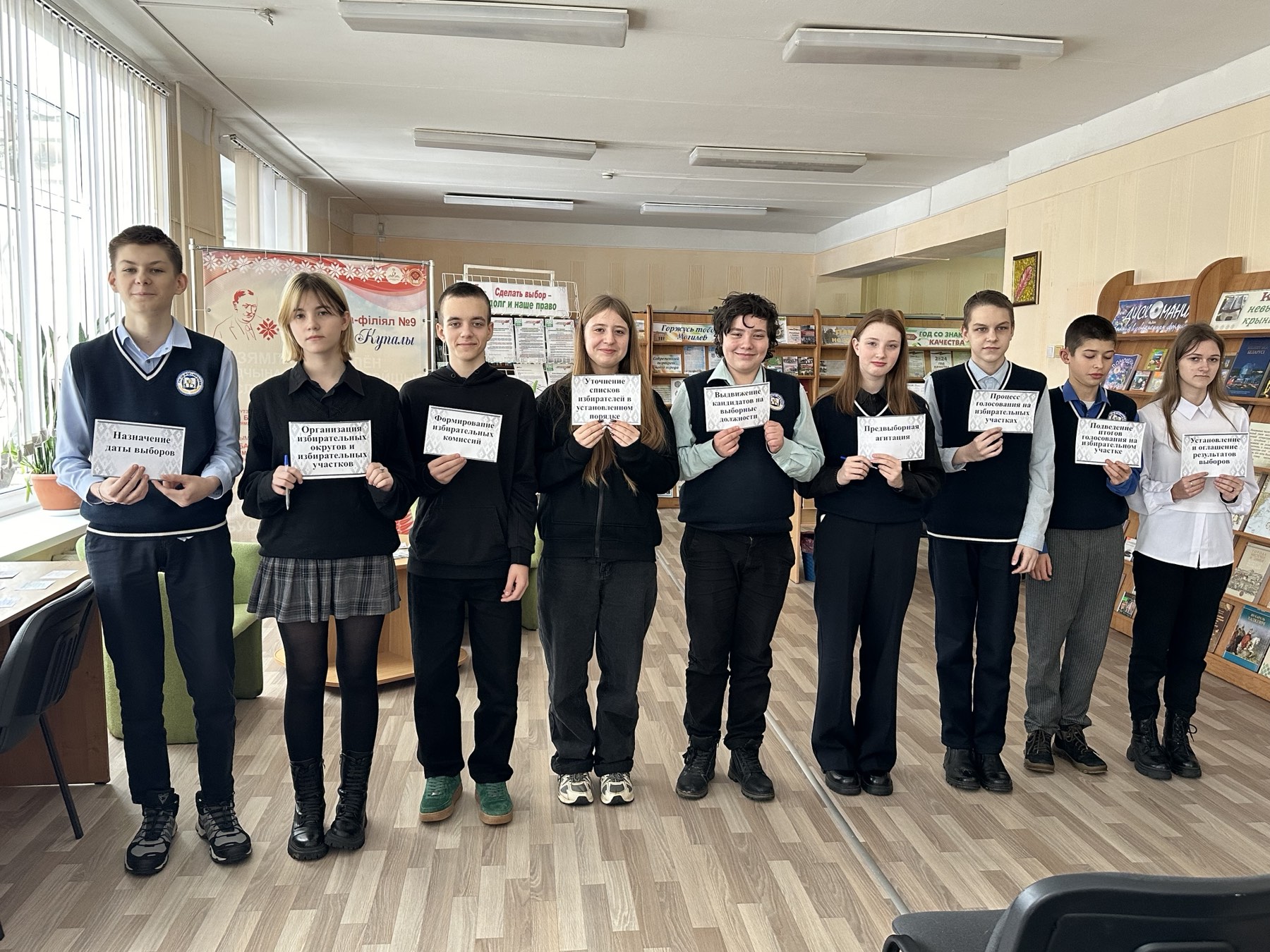 20 февраля учащиеся 8 г класс при посещении библиотеки #9 имени Я.Купалы,приняли участие в деловой игре «Сегодня школьник-завтра избиратель» приуроченную к Единому дню голосования. Учащиеся расширили свой кругозор в области правовых знаний, повысили уровень гражданской и политической культуры. Смогли пообщаться с замечательным человеком: Почетным гражданином г.Могилева- Пеньковой Зинаидой Васильевной.