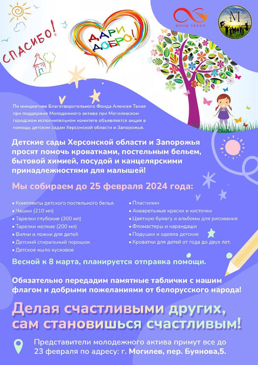 Учащиеся школы приняли участие в благотворительной акции в помощь детским садам Херсонской области и Запорожья. Участие в акции дало возможность каждому желающему сделать доброе дело и помочь тем, кто нуждается в помощи. Активисты собрали и передали подарки ребятам. Мероприятие получилось очень теплым и душевным!