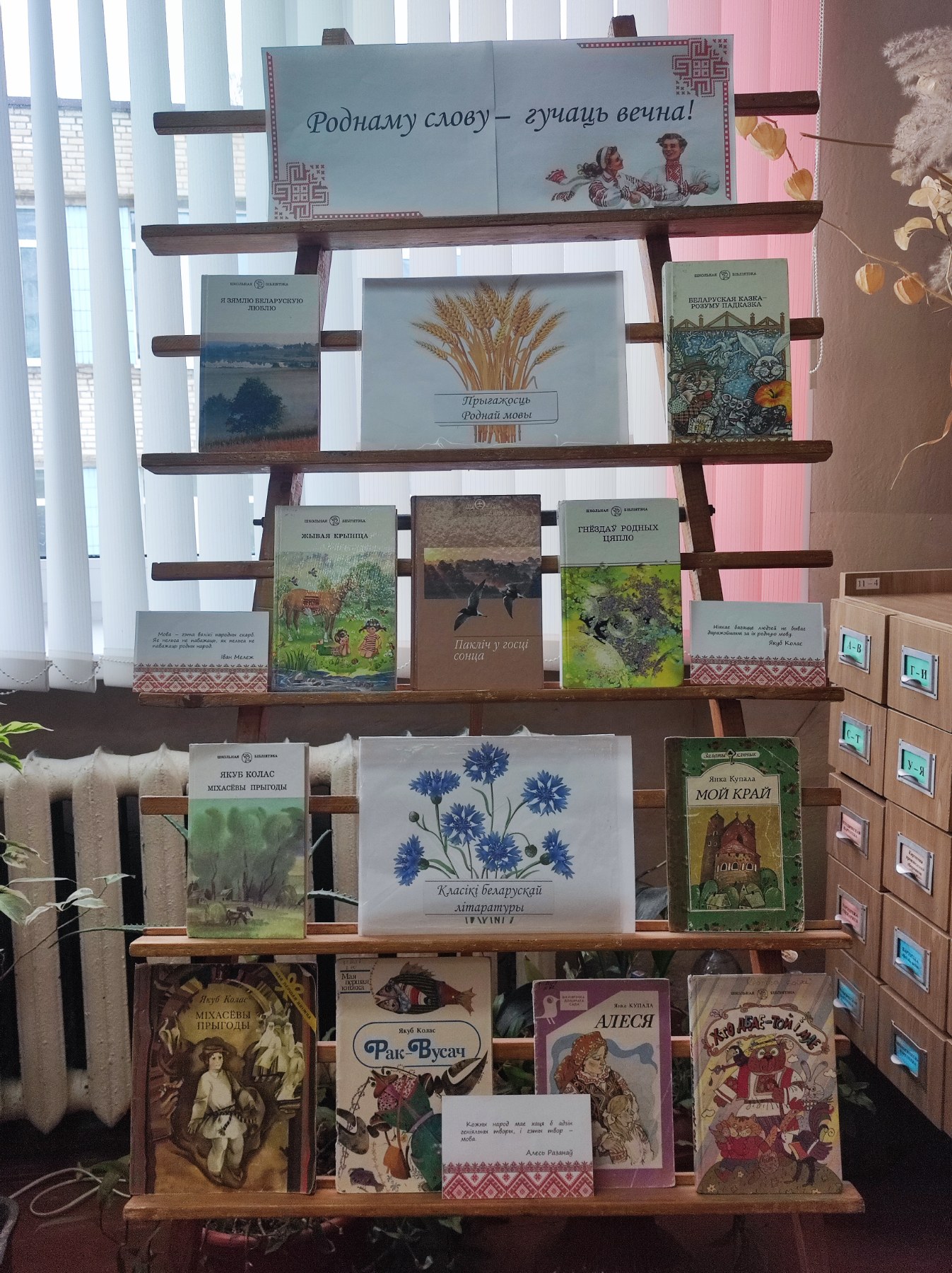 Штогод 21 лютага адзначаецца Міжнародны дзень роднай мовы. Школьнай бібліятэкай была аформлена кніжная выстава “Роднаму слову – гучаць вечна!”. Кожны чалавек павінен ведаць сваю мову, ведаць нашых родных беларускіх пісьменнікаў, а таксама іх творы. Навучэнцы школы пазнаёміліся з беларускімі кнігамі на кніжнай выставе, дзе былі прадстаўлены кнігі наступных беларускіх аўтараў, пісьменнікаў і паэтаў: У. Караткевіча, Я. Коласа, Я. Купалы, В. Жуковіча, Я. Сіпакова і інш.