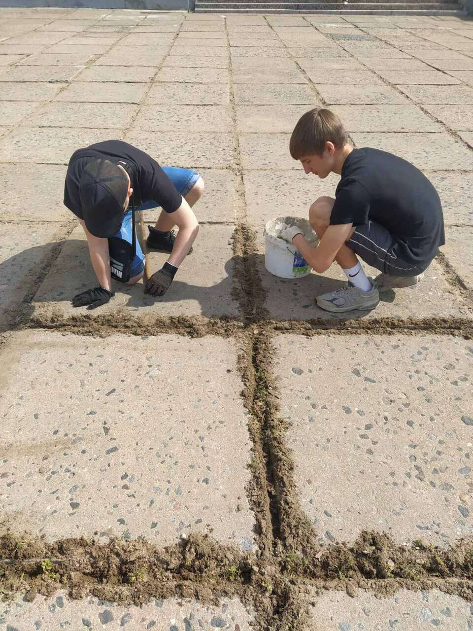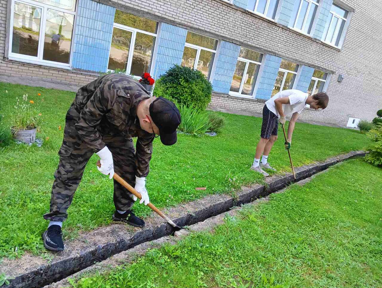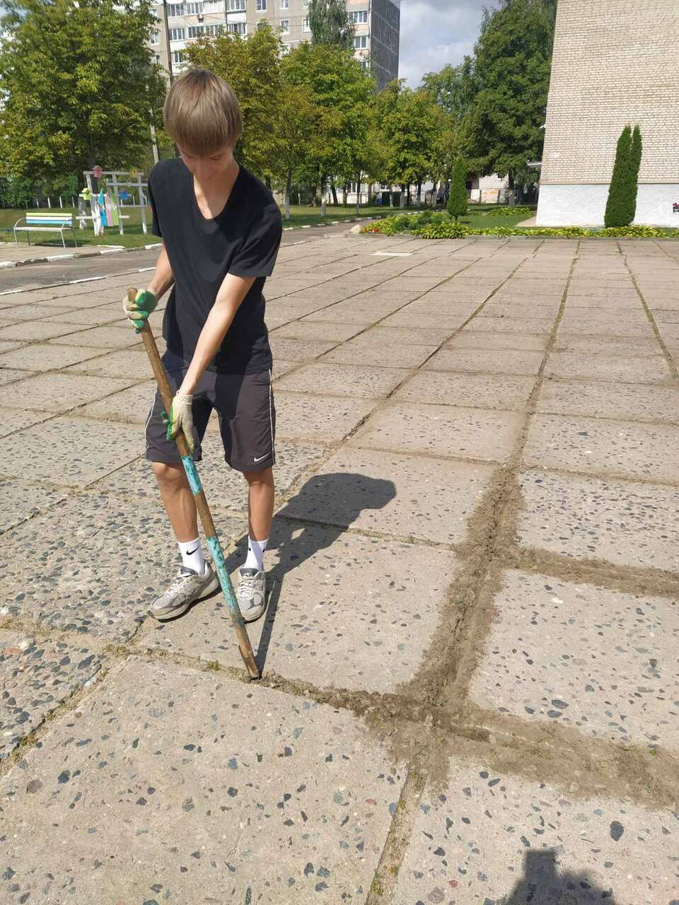 13.08.2024 в рамках работы хобби-центра "Юный умелец" прошло мероприятие по благоустройству территории. Ребята пололи траву между плиткой, убирали мусор.