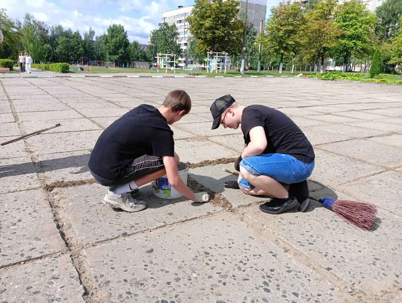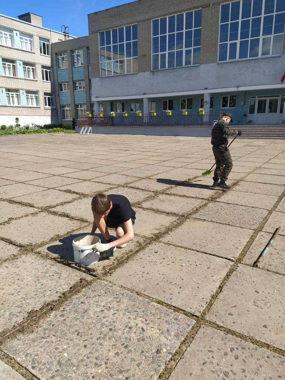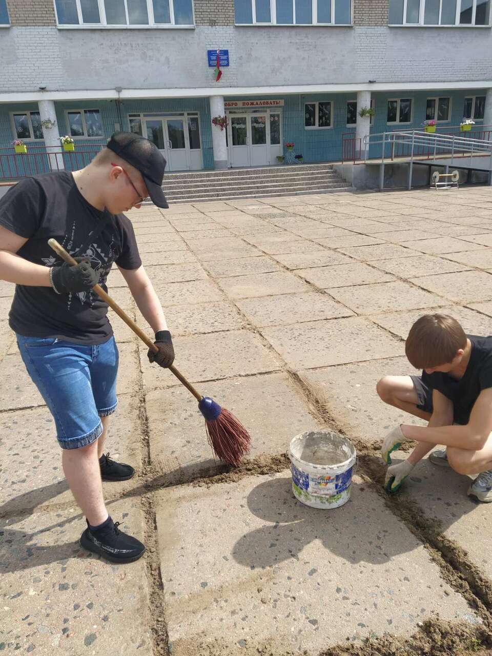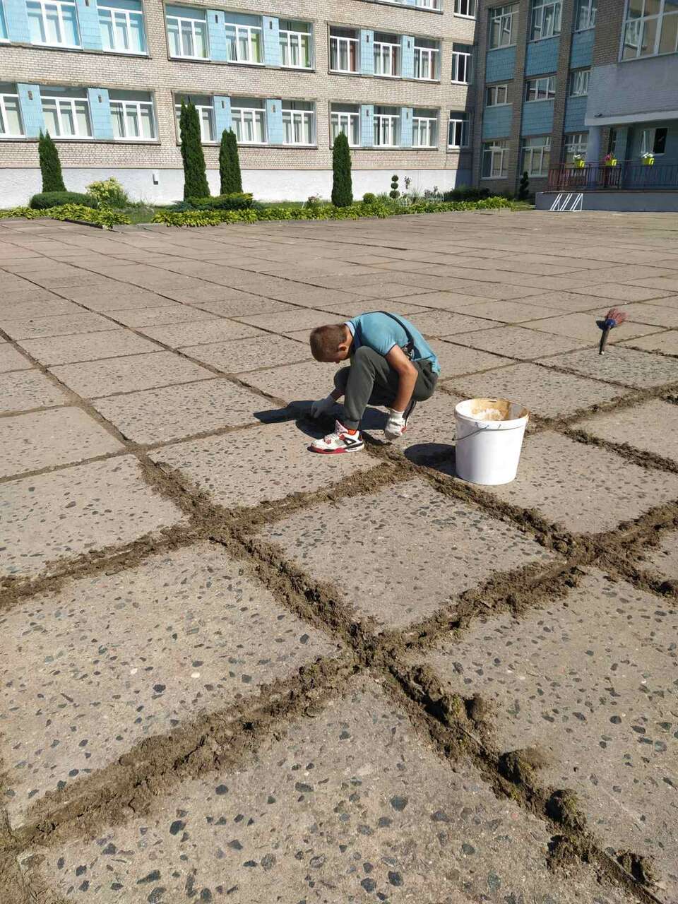 13.08.2024 в рамках работы хобби-центра "Юный умелец" прошло мероприятие по благоустройству территории. Ребята пололи траву между плиткой, убирали мусор.