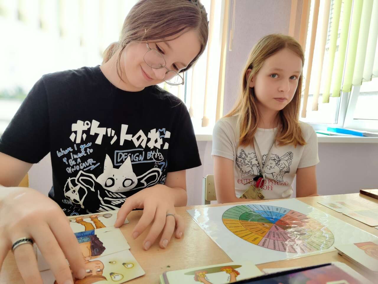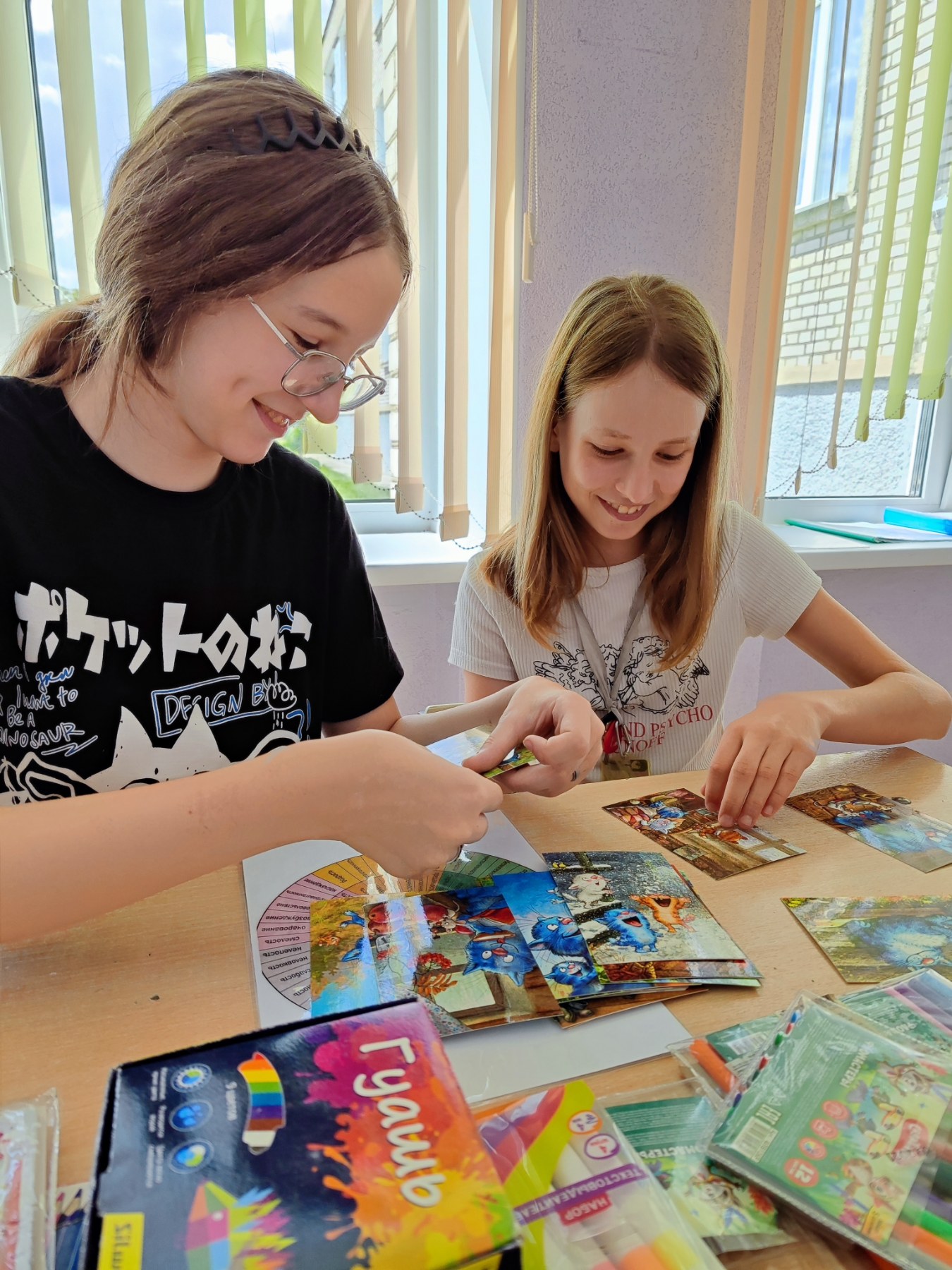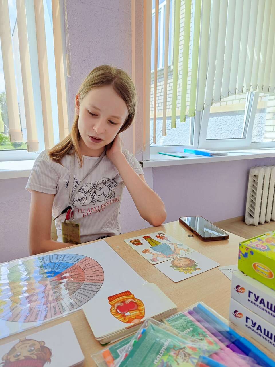 24.07.2024 в рамках работы комнаты психологической разгрузки Гармония прошло арт-терапевтическое занятие с целью снижения психоэмоционального напряжения. Девочки с помощью метафорических ассоциацивных карт исследовали свое эмоциональное состояние, делились историями из жизни, обусловленными эмоциональным напряжением.