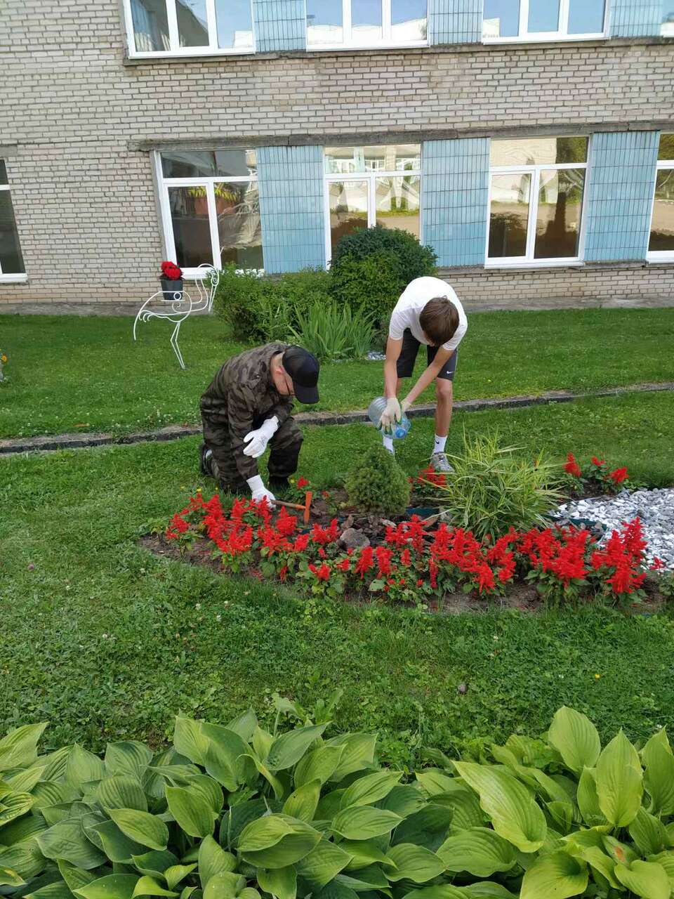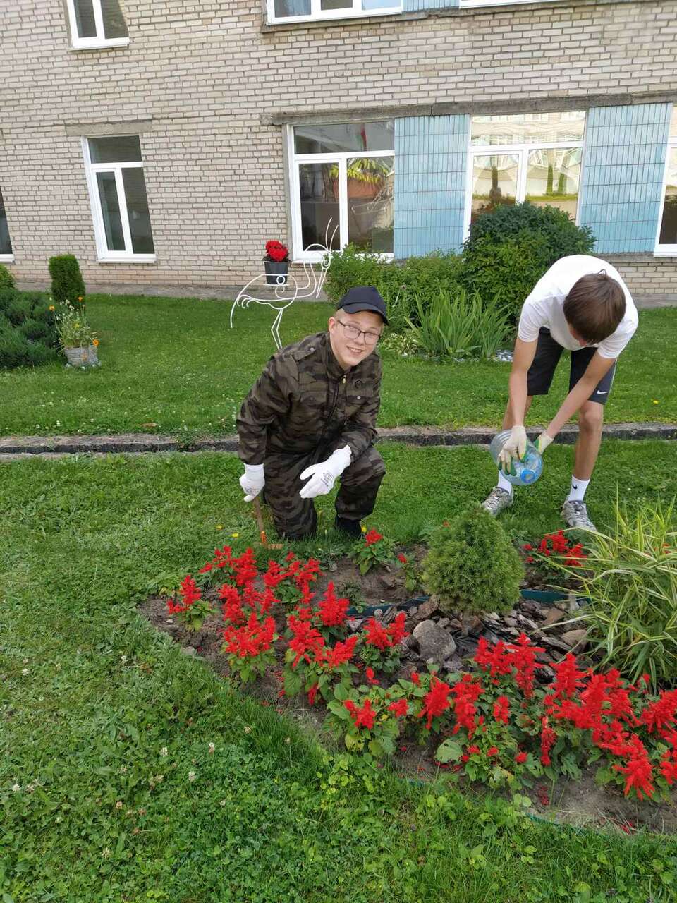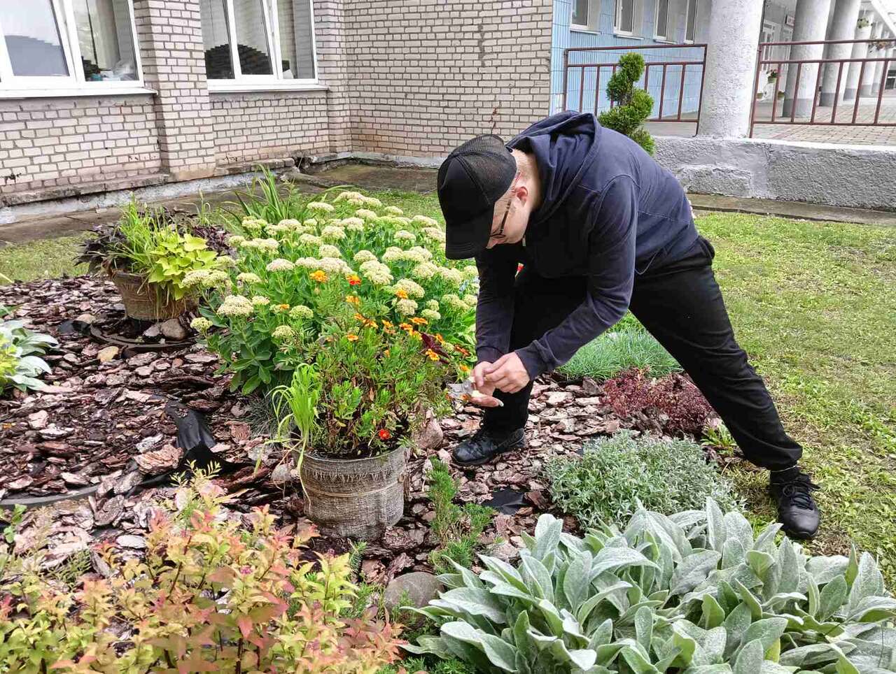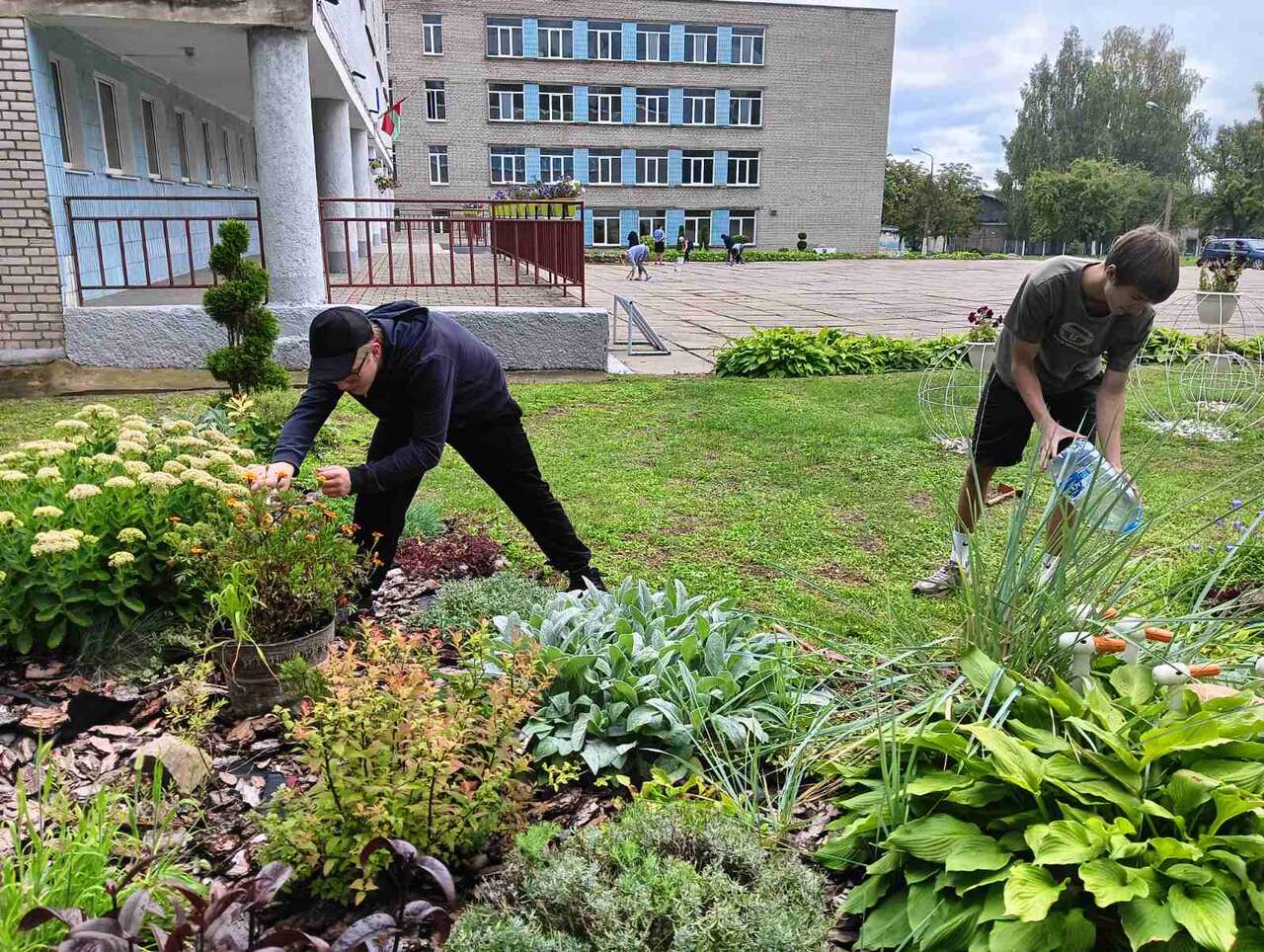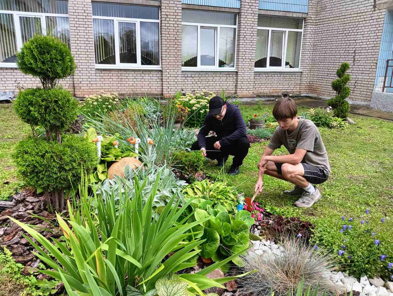 22.07.2024 в рамках работы экоклуба "Зеленый след" учащиеся школы оказали помощь в поливе растений и обрезке сухих соцветий.