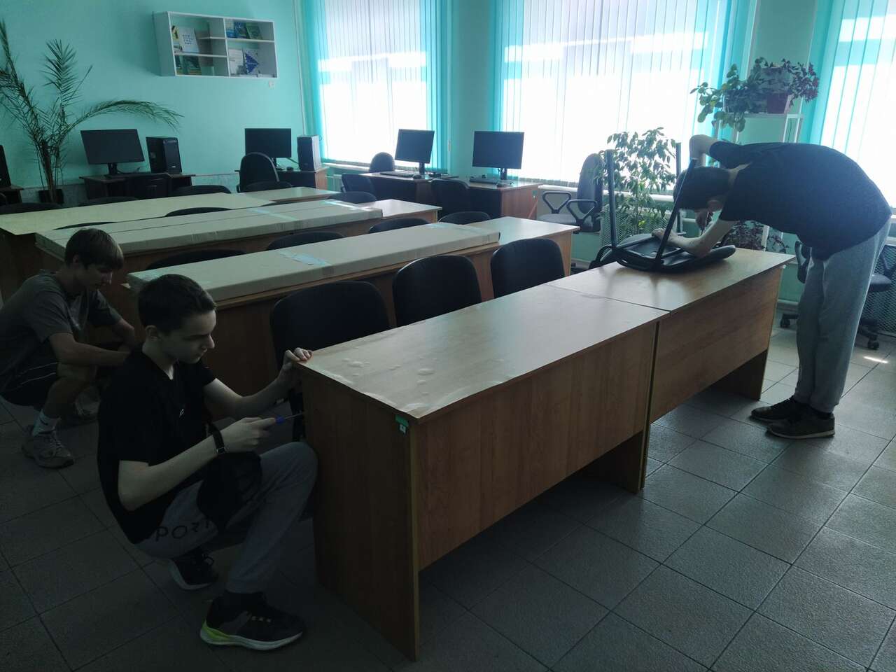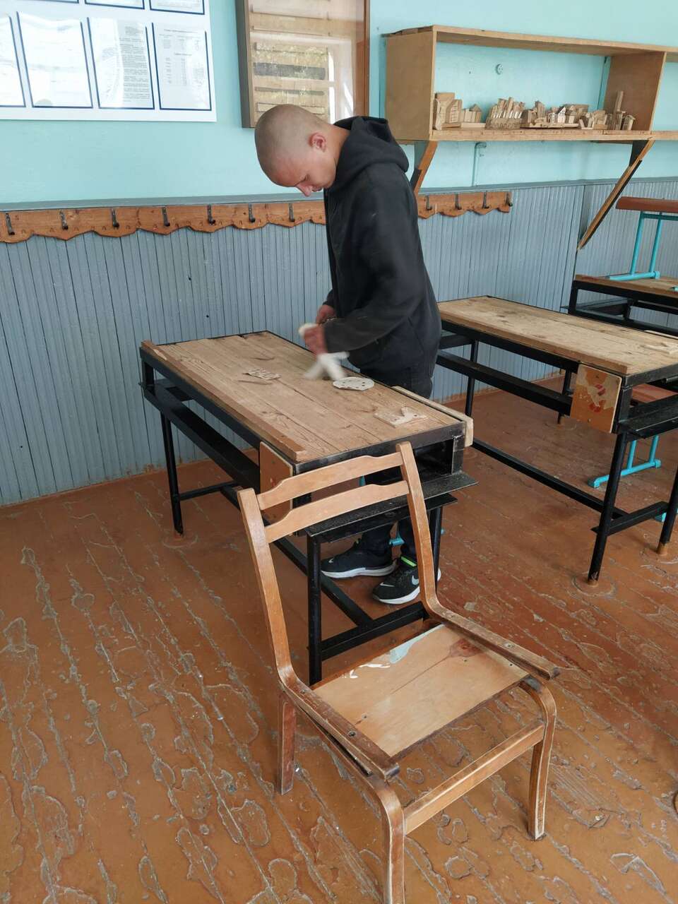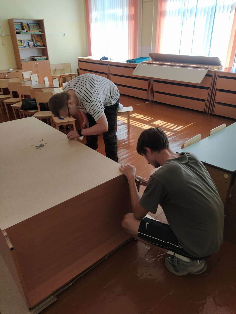 22.08.2024 в рамках работы хобби-центра "Юный умелец" ребята оказывали помощь по ремонту учебной мебели. Ребята ремонтировали столы, собирали шкафы.