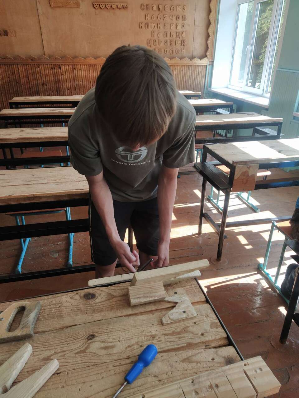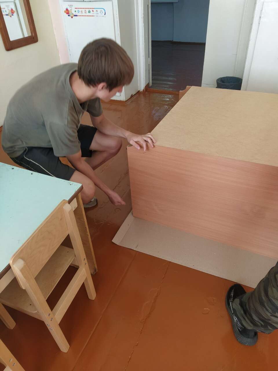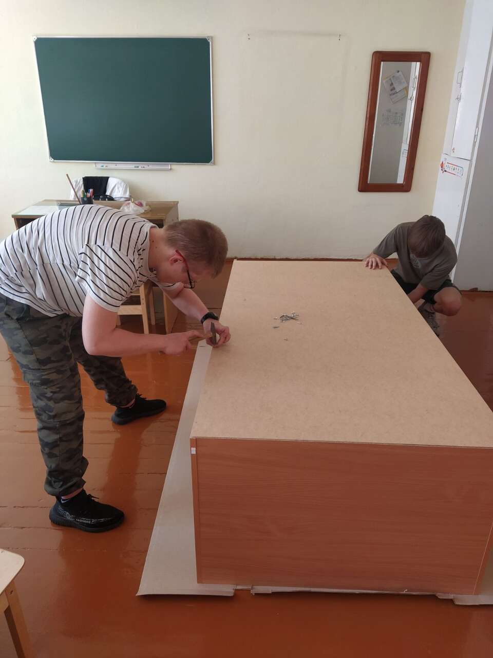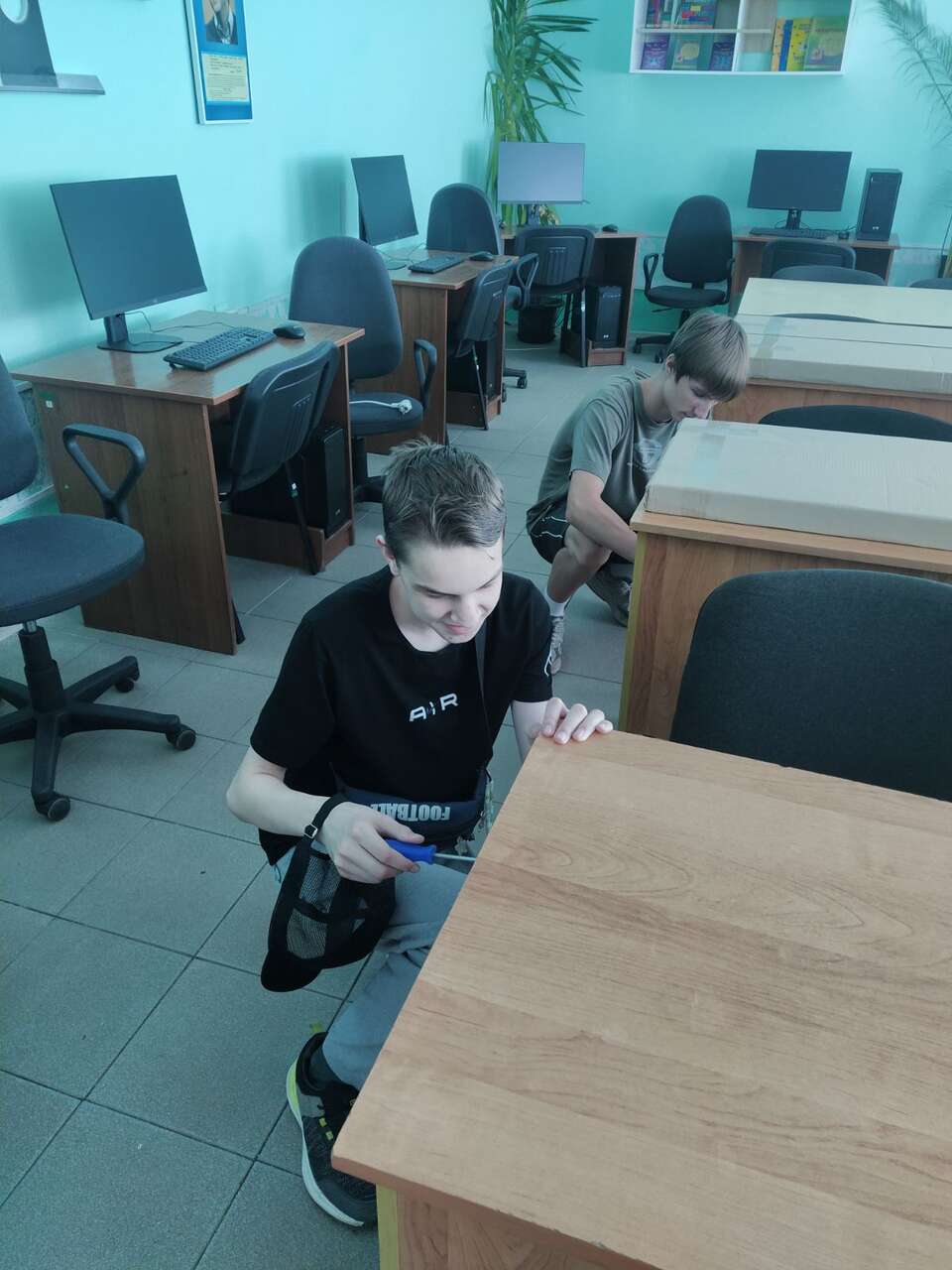22.08.2024 в рамках работы хобби-центра "Юный умелец" ребята оказывали помощь по ремонту учебной мебели. Ребята ремонтировали столы, собирали шкафы.