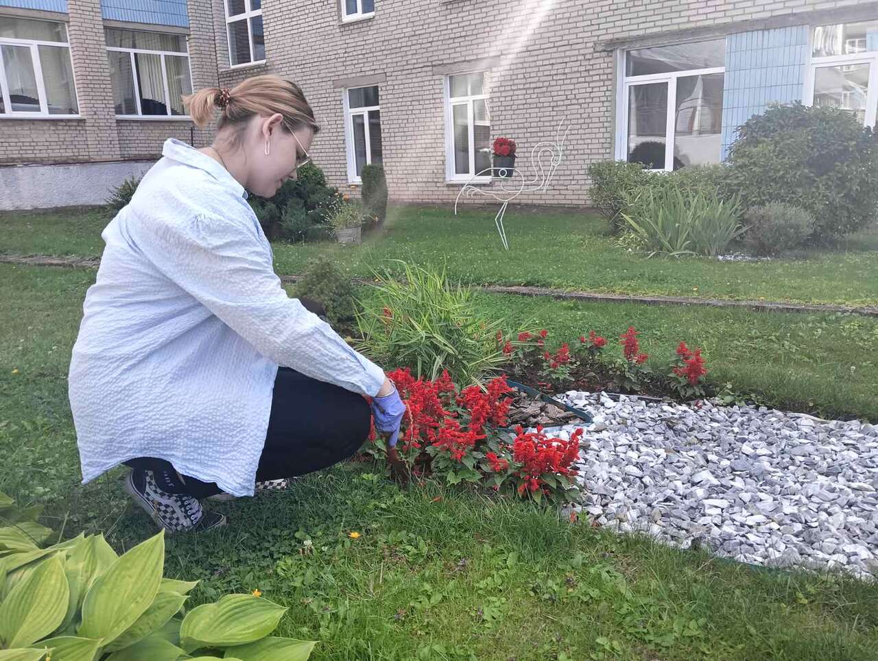23.07.2024 года в рамках работы экоклуба "Зеленый след" учащиеся школы оказали помощь в уходе за ландшафтной композицией "Сухой ручей", а также в обрезке сухих соцветий.