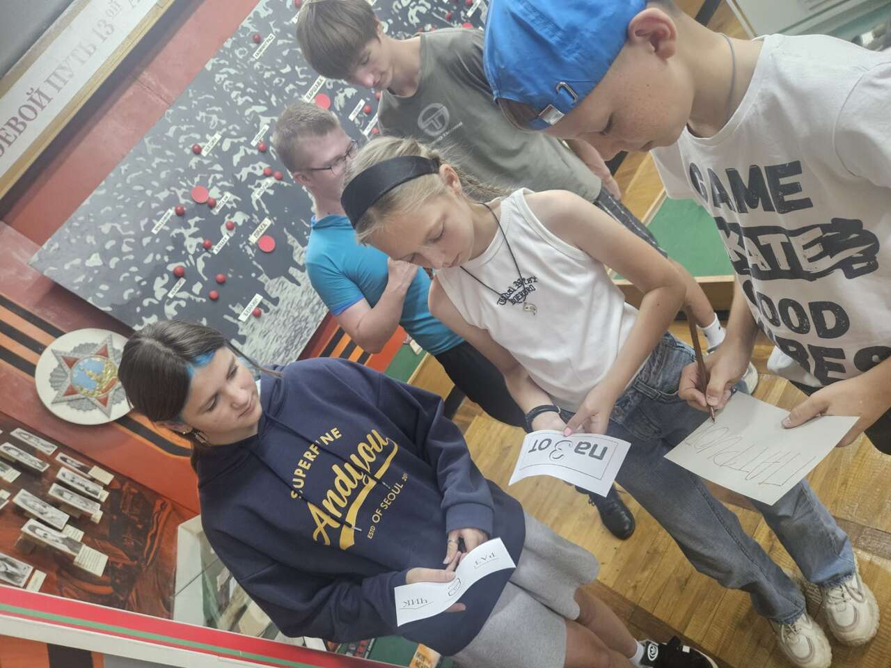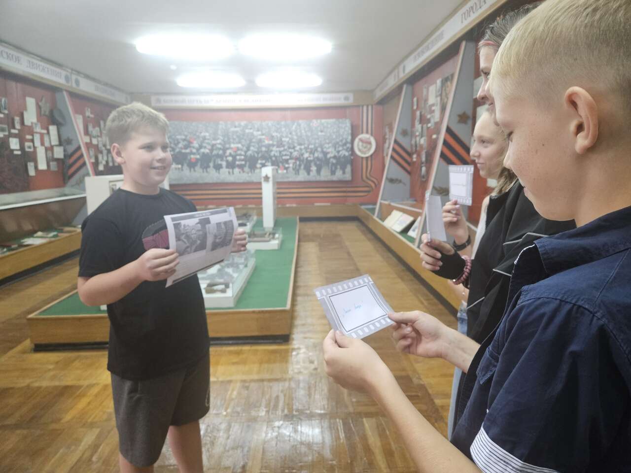 16.08 в рамках работы музея боевой славы для посетителей была организована выставка "Секреты фронтовых газет: расшифруй код Победы", которая посвящена газетам, издававшимися в годы войны. Они смогли увидеть оригиналы новостей, статей и объявлений, которые отражают события того времени , ознакомились с важнейшими заголовками газет и обсудили их значение.