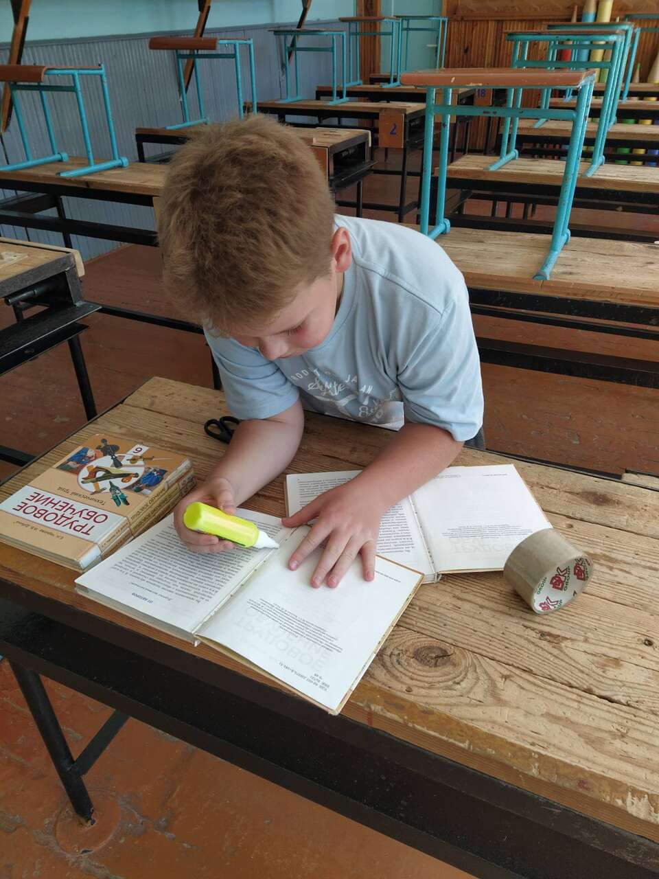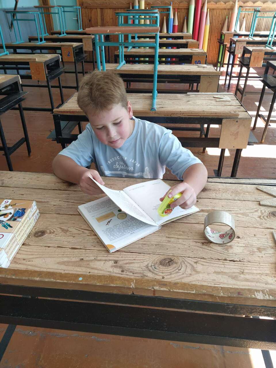 16.08.2024 в рамках работы хобби-центра "Юный умелец" ребята продолжили восстанавливать наглядных пособий. Ребята ремонтировали плакаты, подклеивали книги.