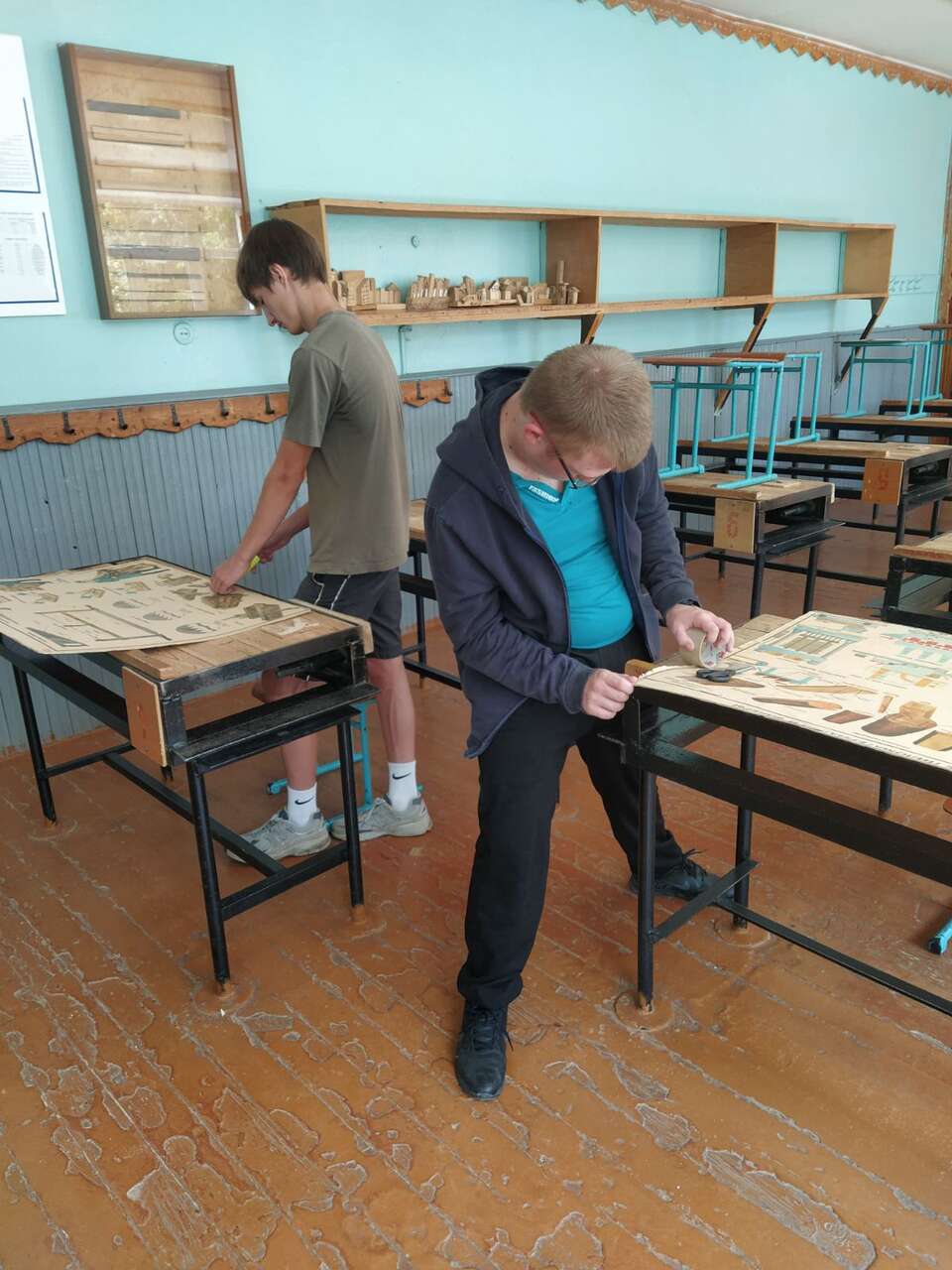 21.08.2024 в рамках работы хобби-центра "Юный умелец" ребята выполняли ремонт наглядных пособий.