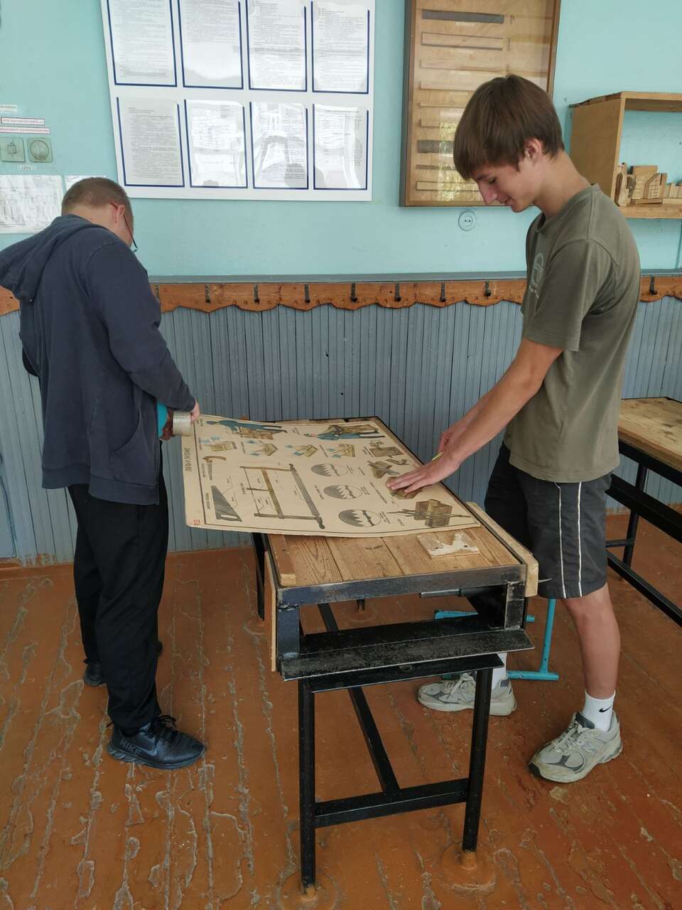 15.08.2024 в рамках работы хобби-центра "Юный умелец" ребята оказывали помощь в восстановлении наглядных пособий. Ребята ремонтировали плакаты.