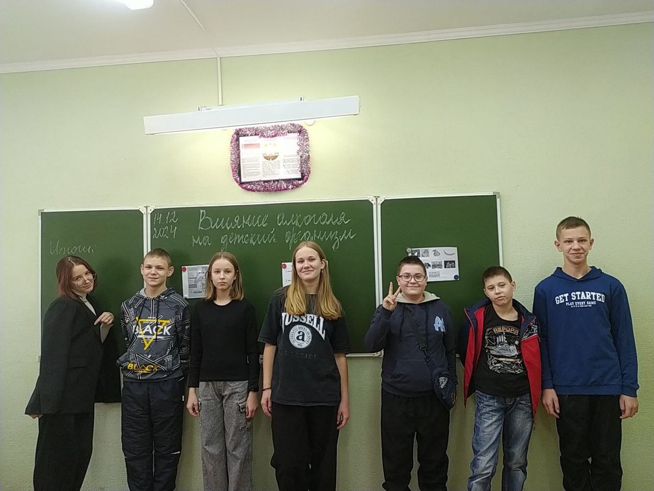 14.12.2024 в 7-х классах прошел час познания "Влияние алкоголя на детский организм". Мероприятие направлено на формирование здорового образа жизни. Ребятам в очередной раз было рассказано и наглядно показано как меняется организм человека под воздействием алкоголя.