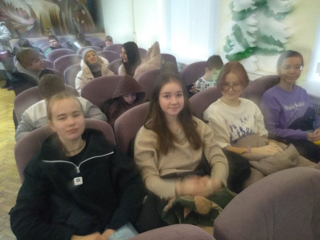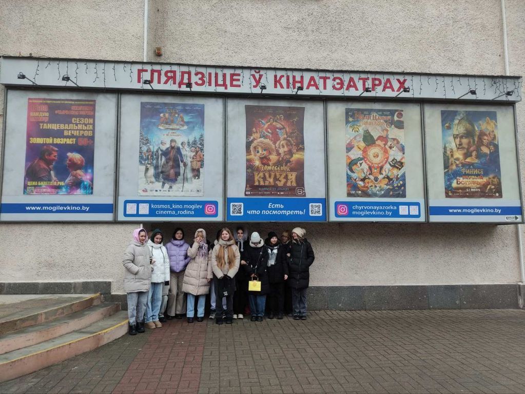 28.12 учащиеся 9 "Б" класса посетили кинотеатр "Чырвоная зорка" и посмотрели фильм "Летучий корабль".