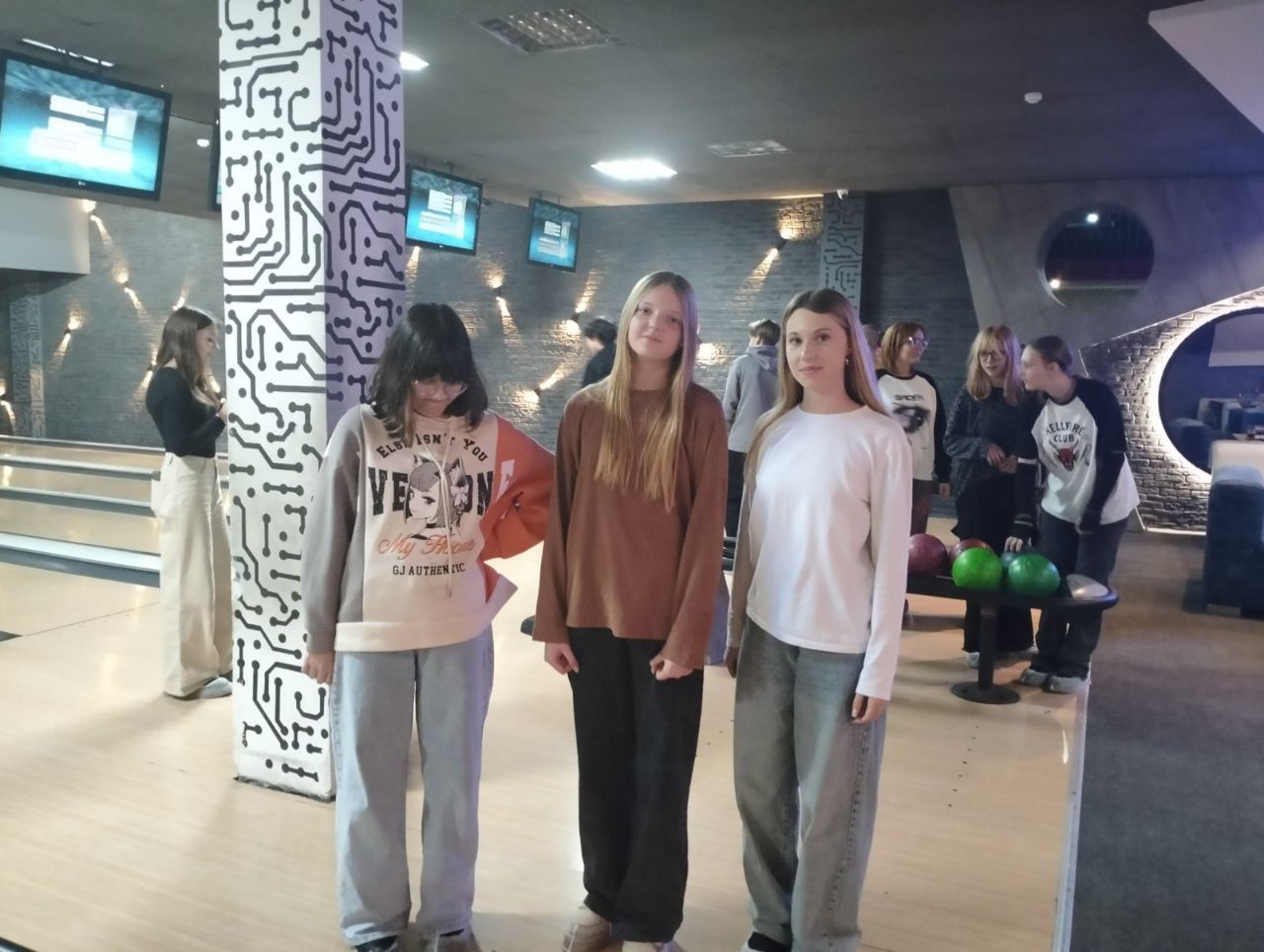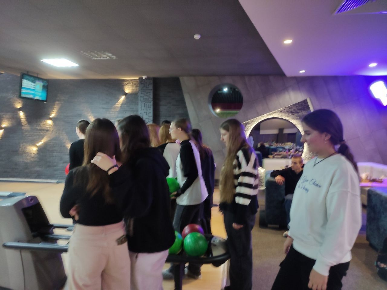 26 декабря учащиеся 8В, 9Б и 9Д классов посетили развлекательный центр "Материк", где приняли участие в новогодней программе с игрой в боулинг.